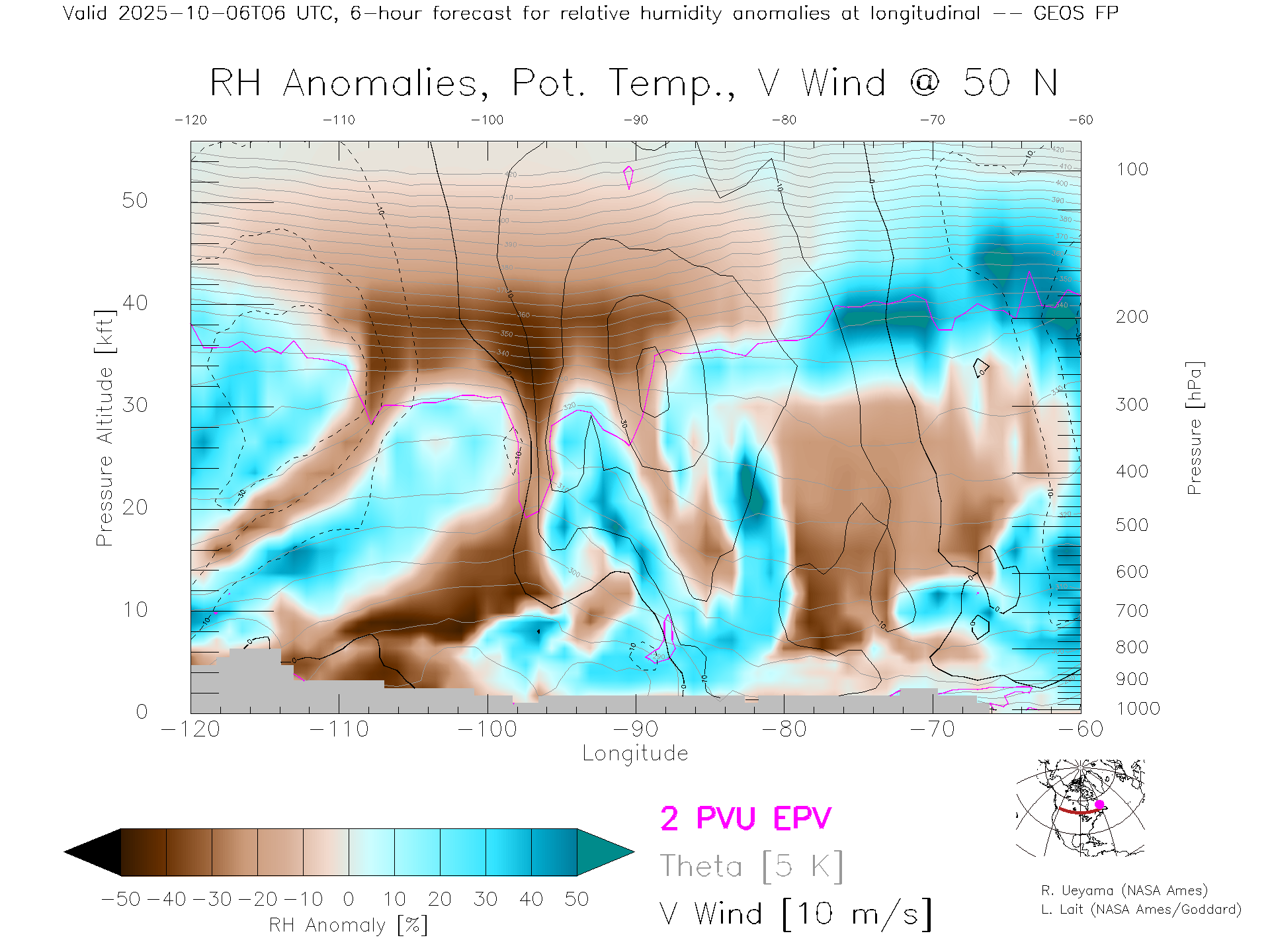 GEOS Forecast Rel. Hum. X-Section (50 N)