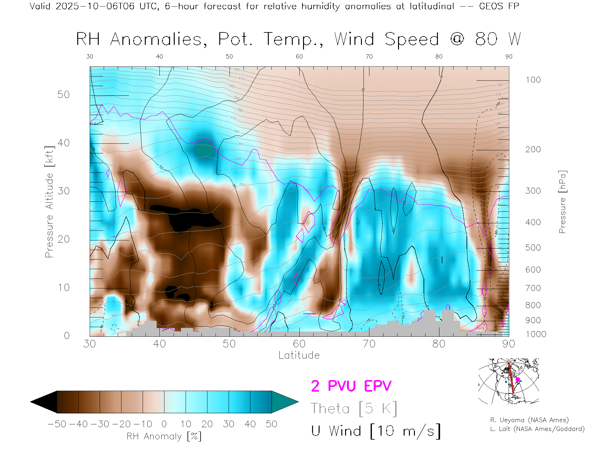GEOS Forecast Rel. Hum. X-Section (80 W)