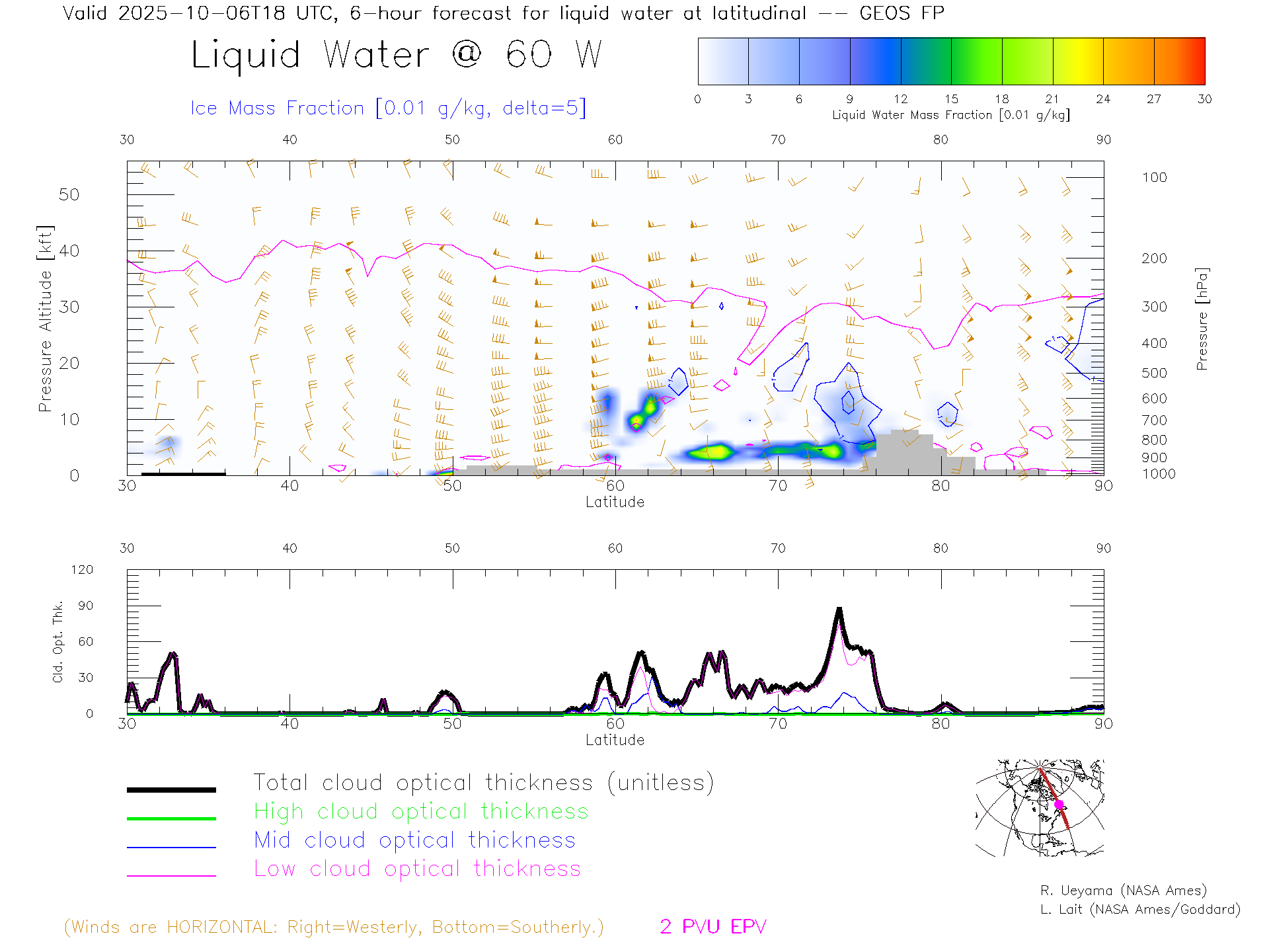 GEOS Forecast Cloud Water Content X-Section (60 W)