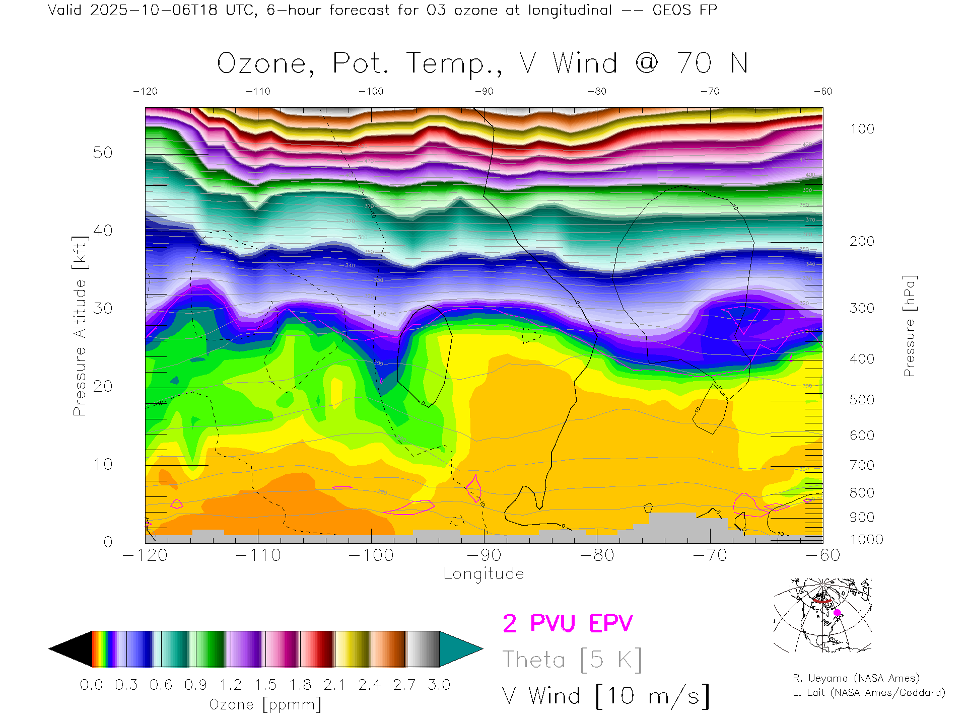 GEOS Forecast Ozone X-Section (70 N)