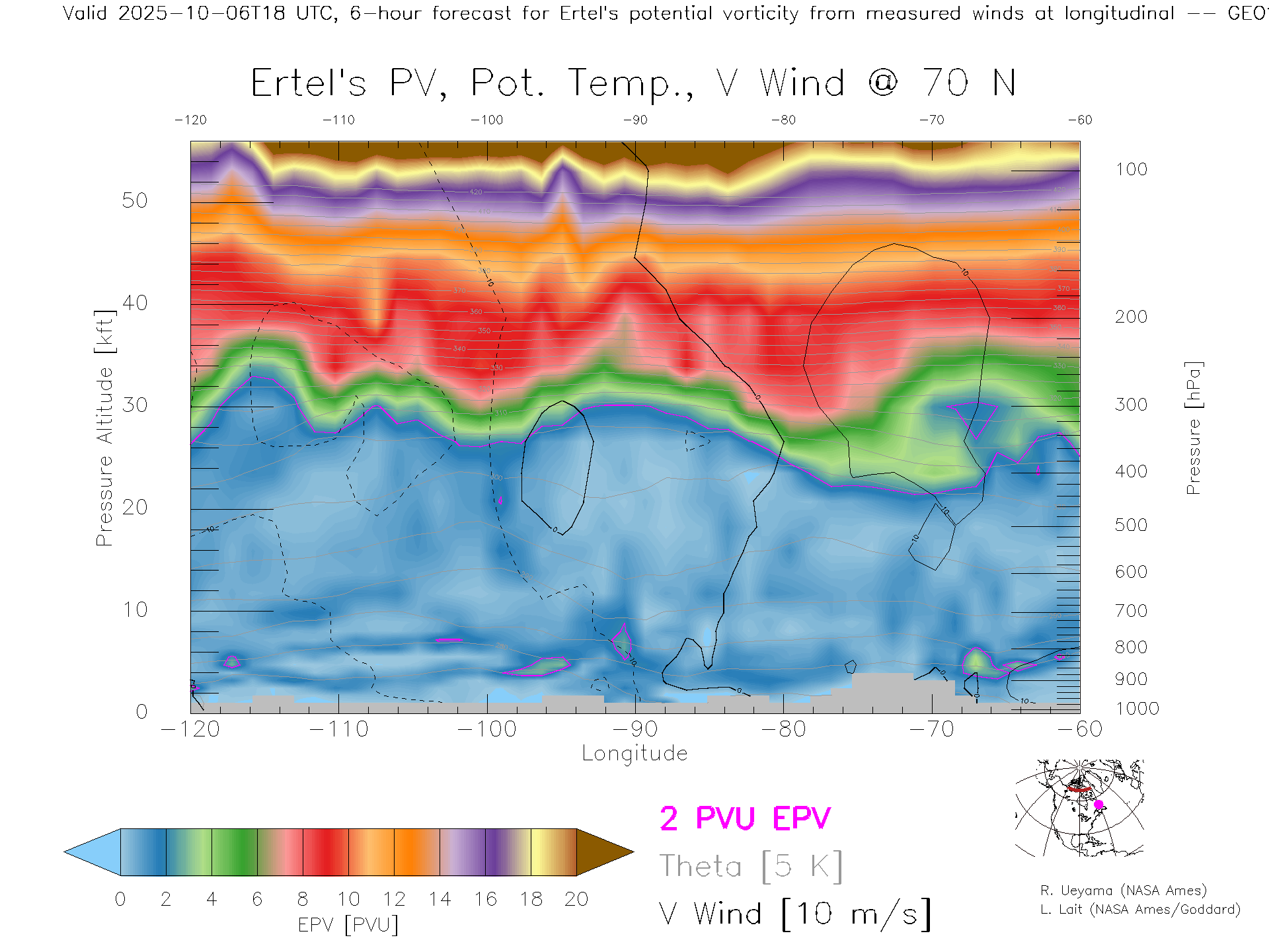 GEOS Forecast PV X-Section (70 N)