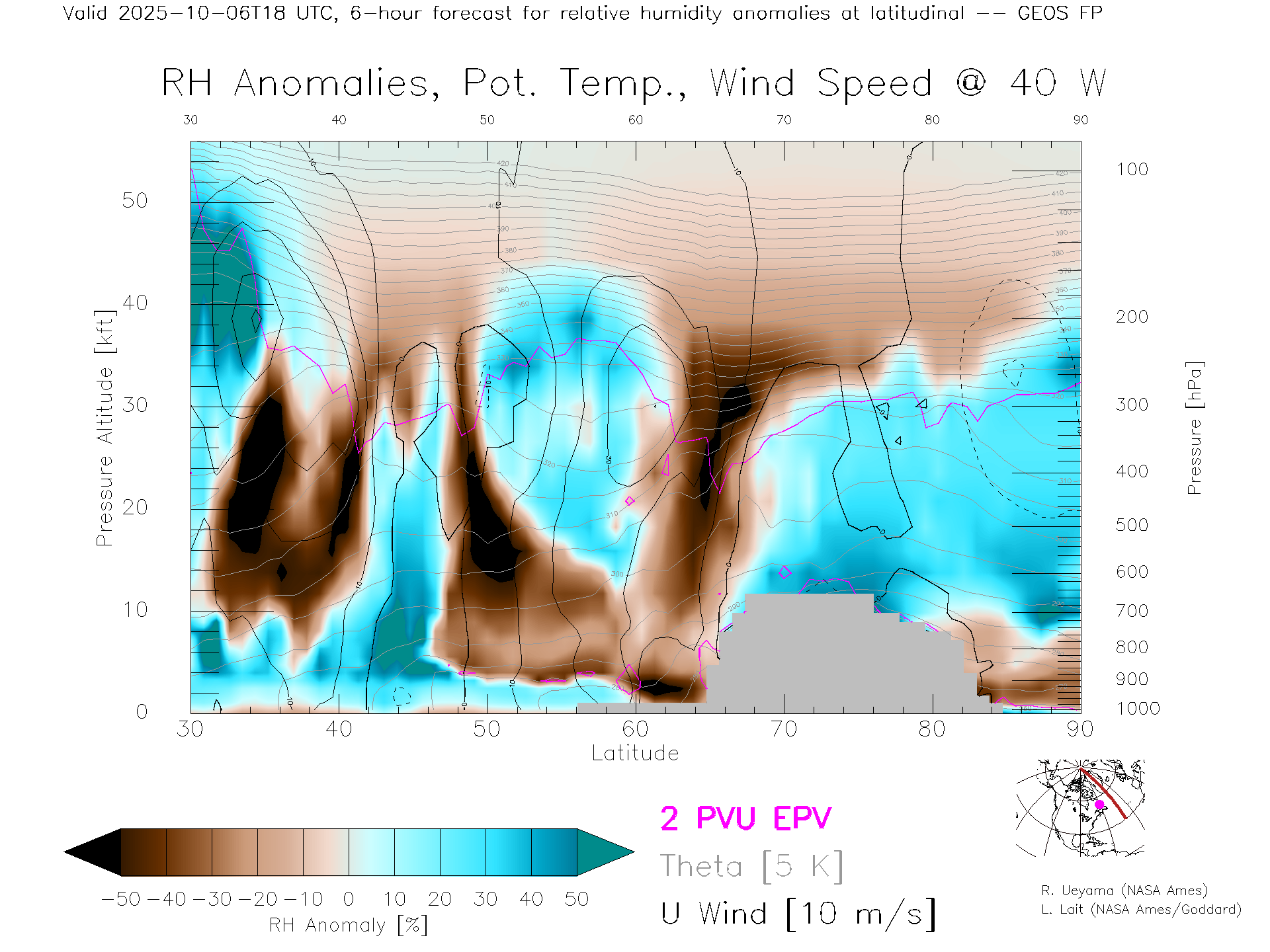 GEOS Forecast Rel. Hum. X-Section (40 W)