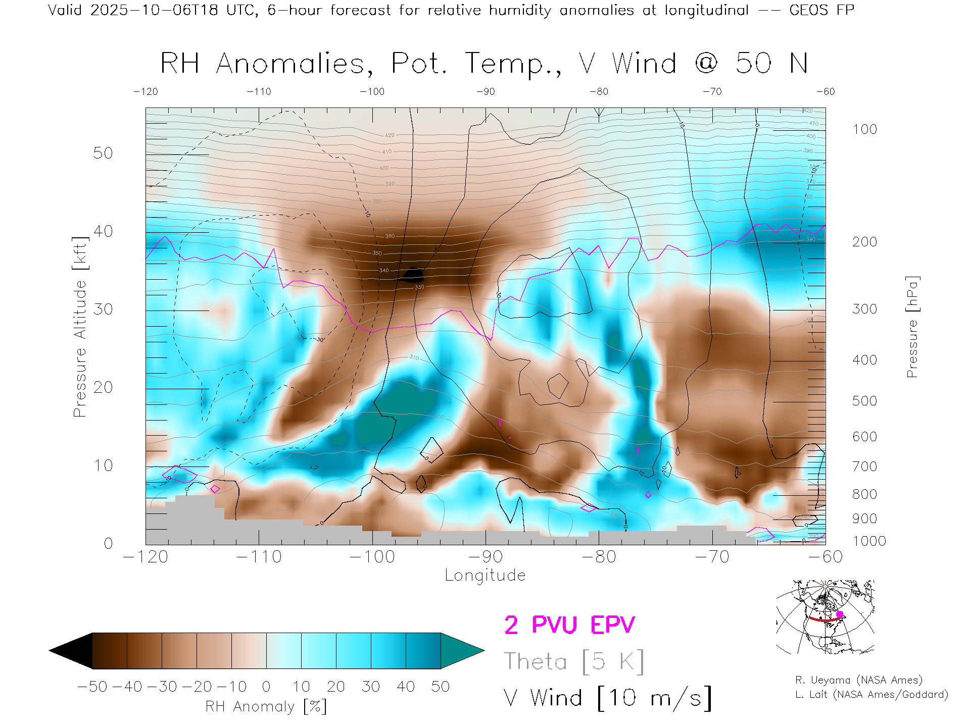 GEOS Forecast Rel. Hum. X-Section (50 N)