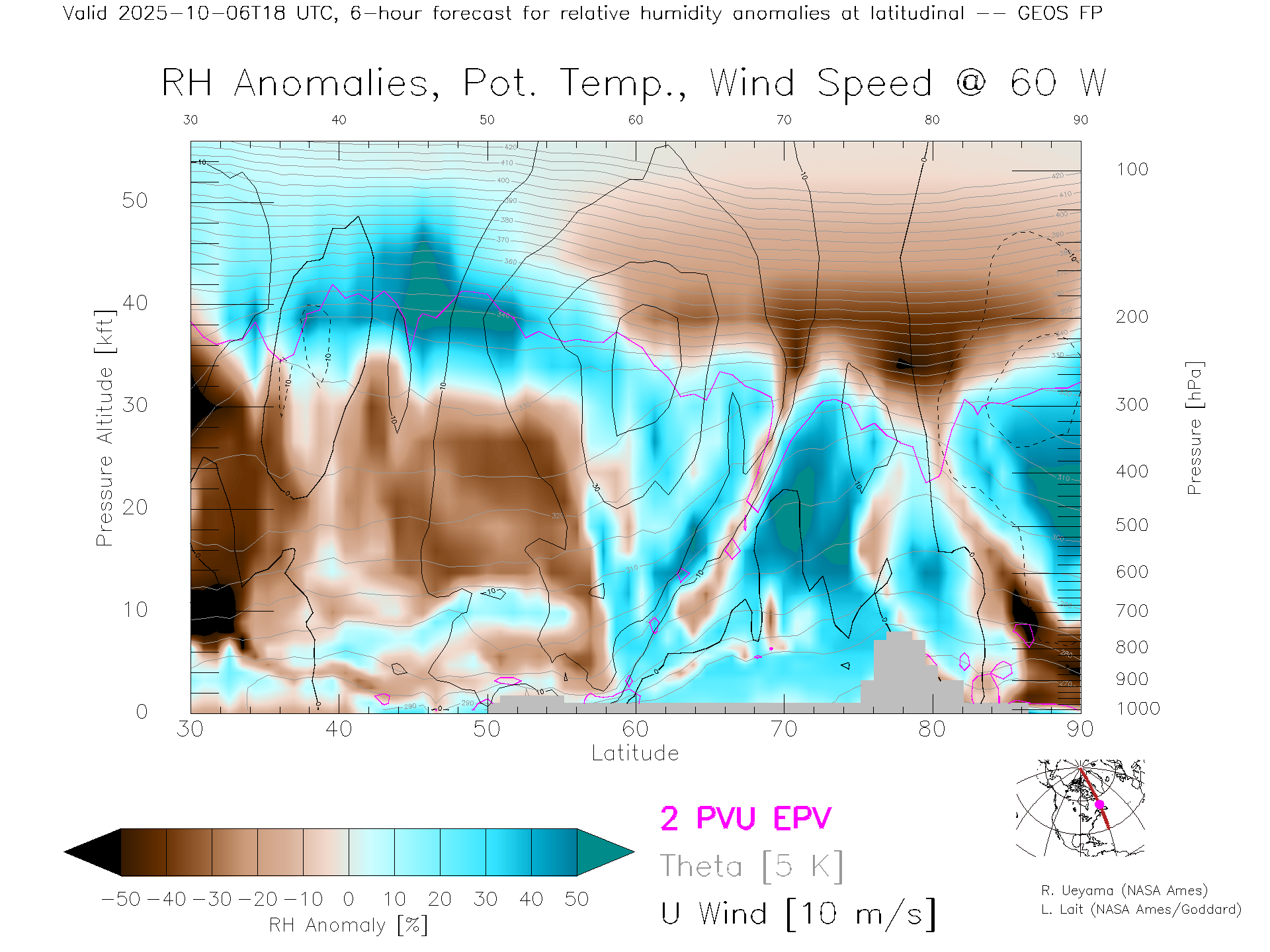 GEOS Forecast Rel. Hum. X-Section (60 W)