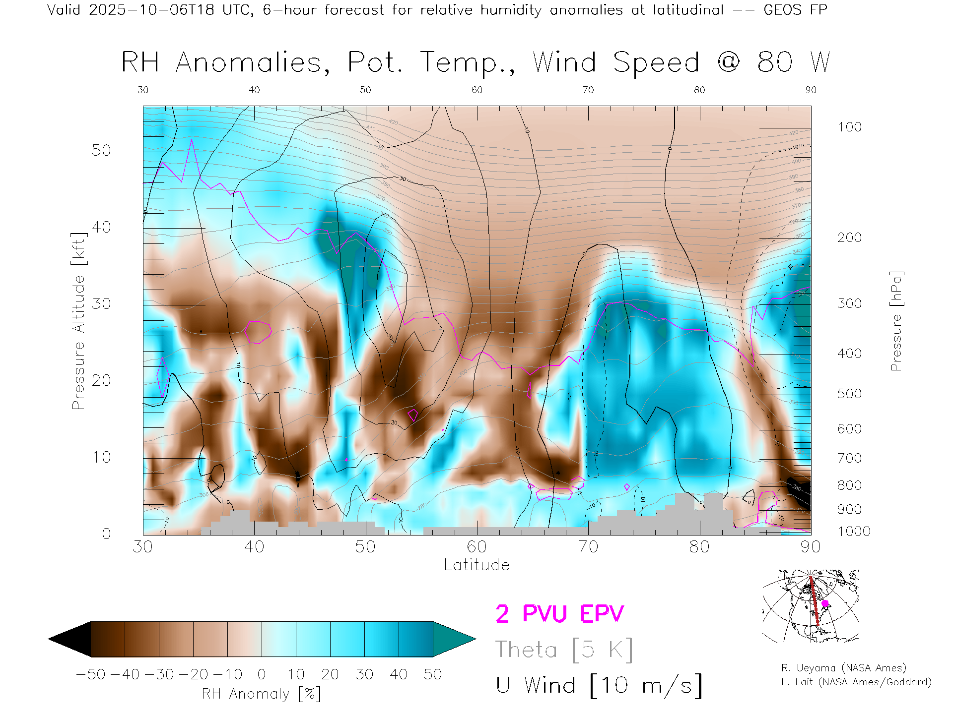 GEOS Forecast Rel. Hum. X-Section (80 W)