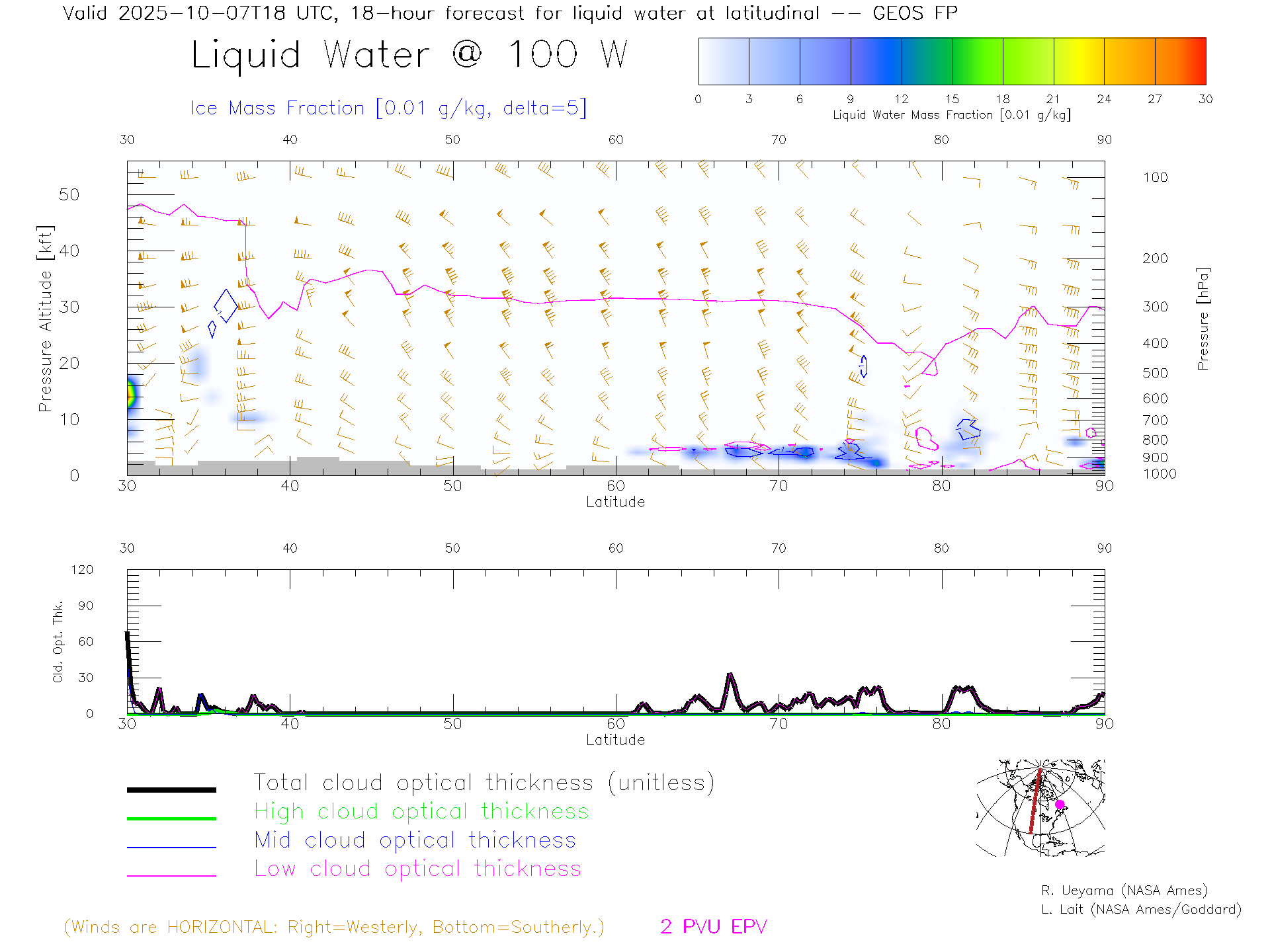 GEOS Forecast Cloud Water Content X-Section (100 W)