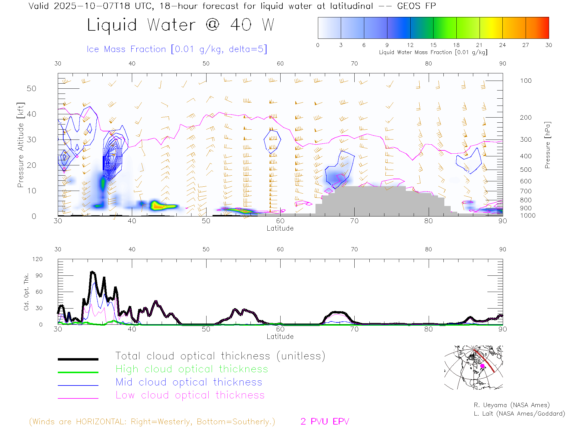 GEOS Forecast Cloud Water Content X-Section (40 W)