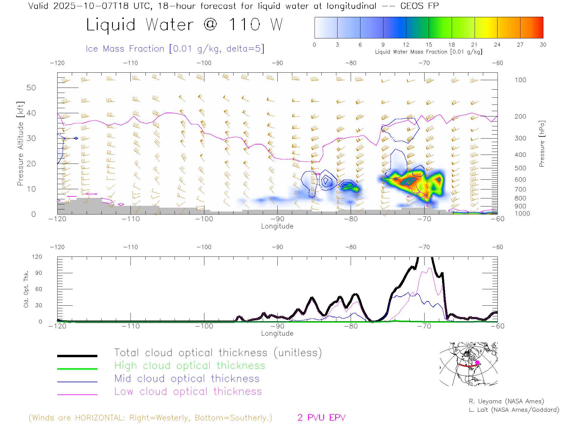 GEOS Forecast Cloud Water Content X-Section (50 N)