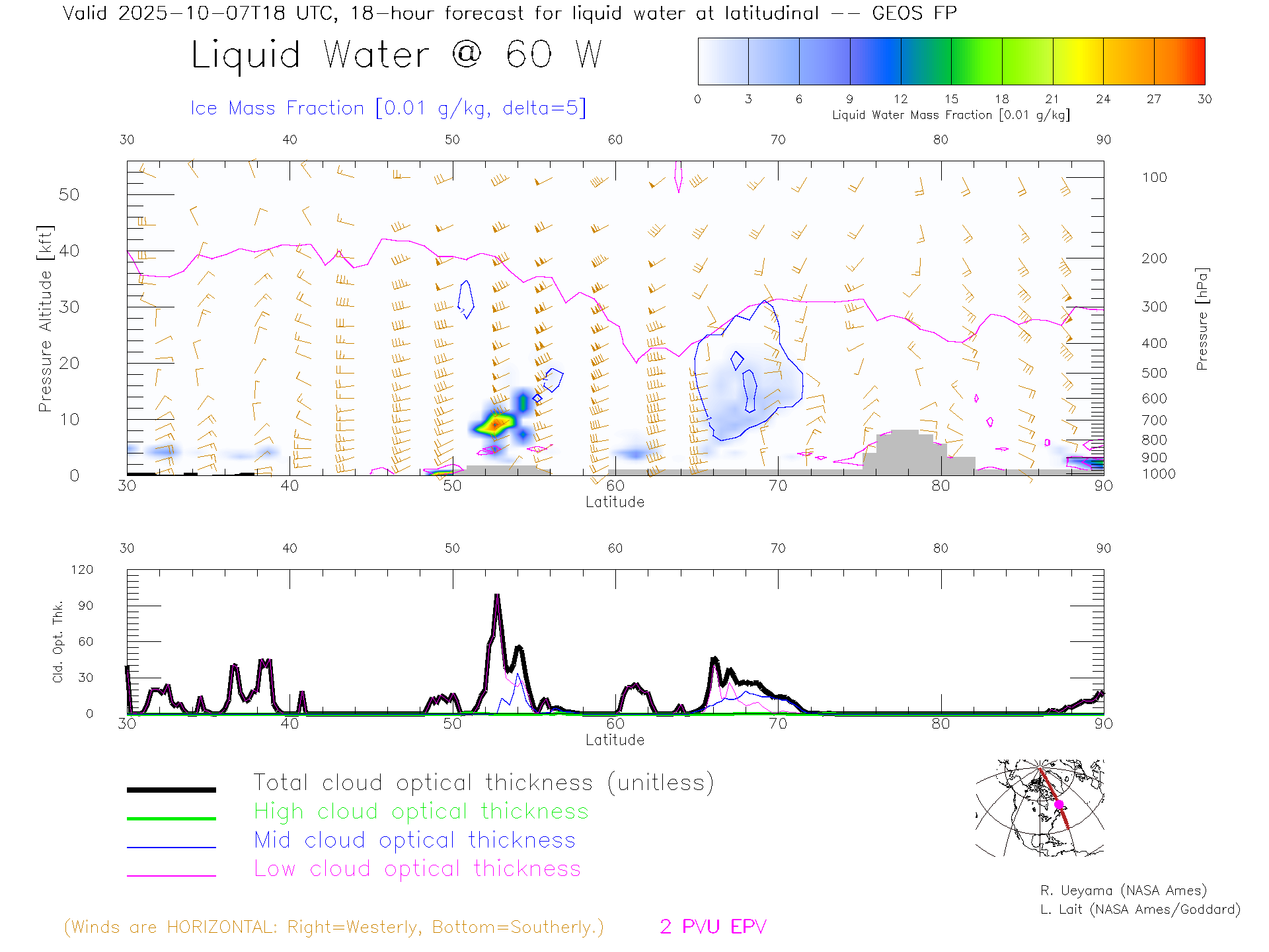 GEOS Forecast Cloud Water Content X-Section (60 W)