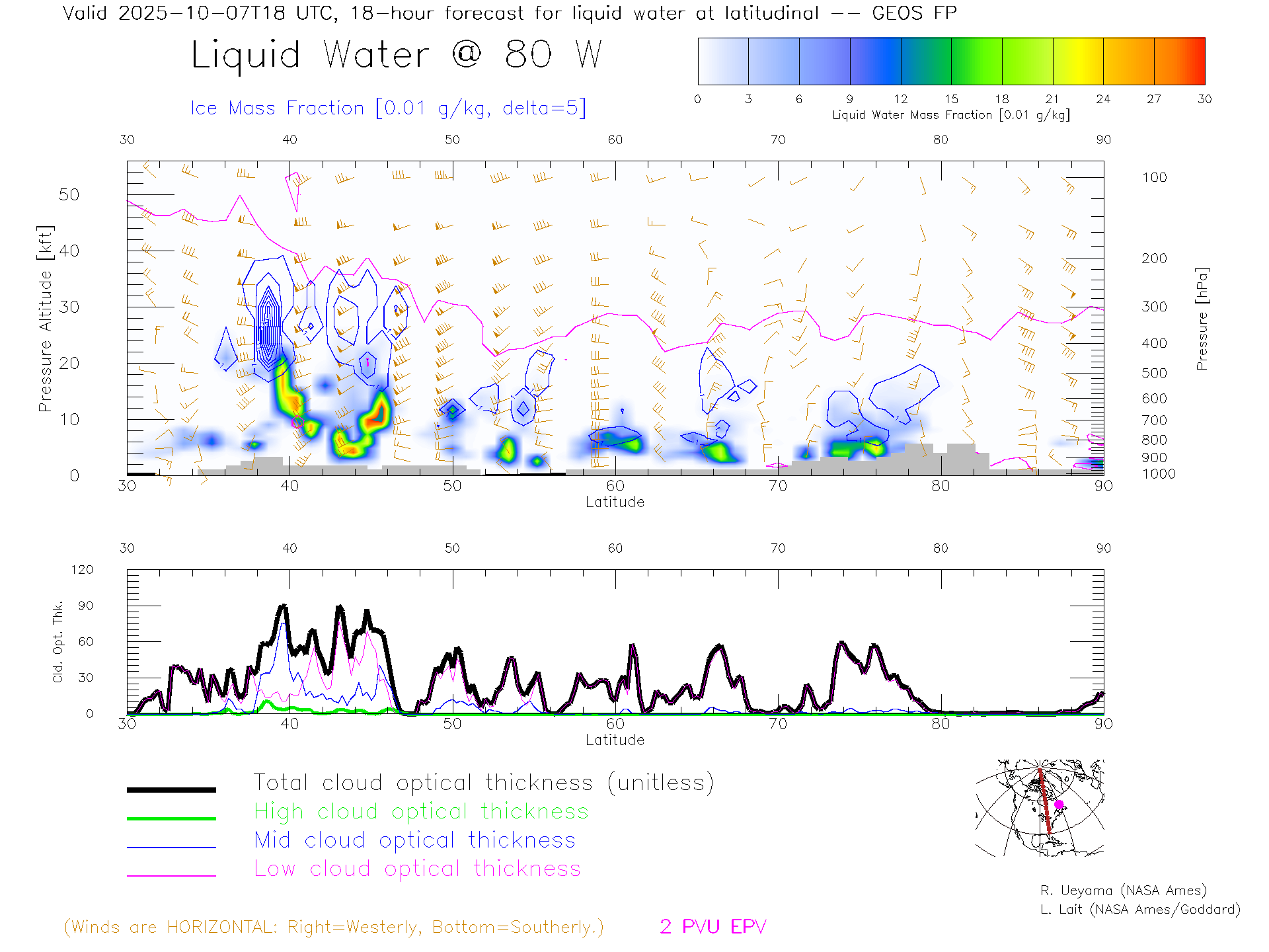 GEOS Forecast Cloud Water Content X-Section (80 W)