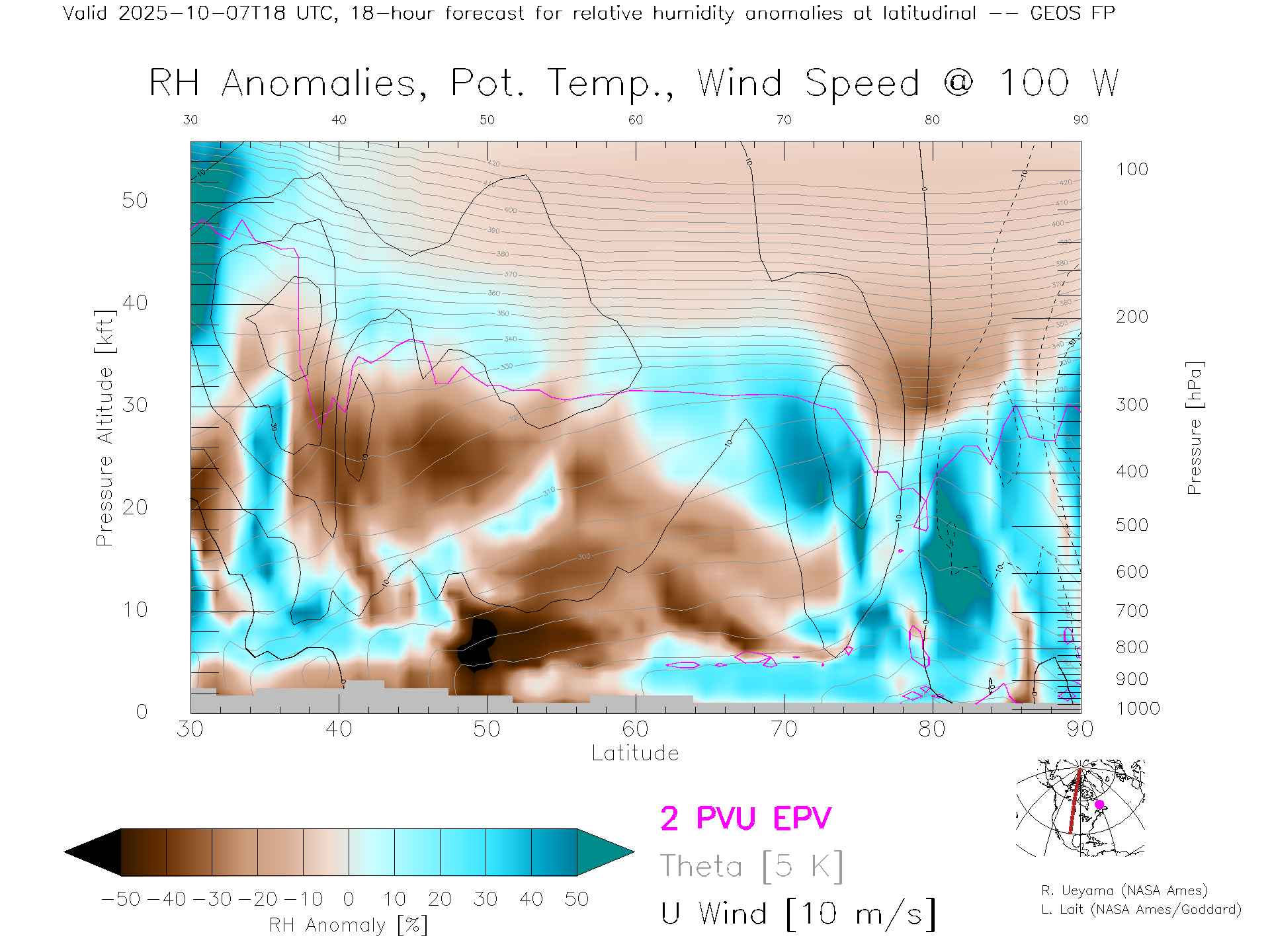 GEOS Forecast Rel. Hum. X-Section (100 W)