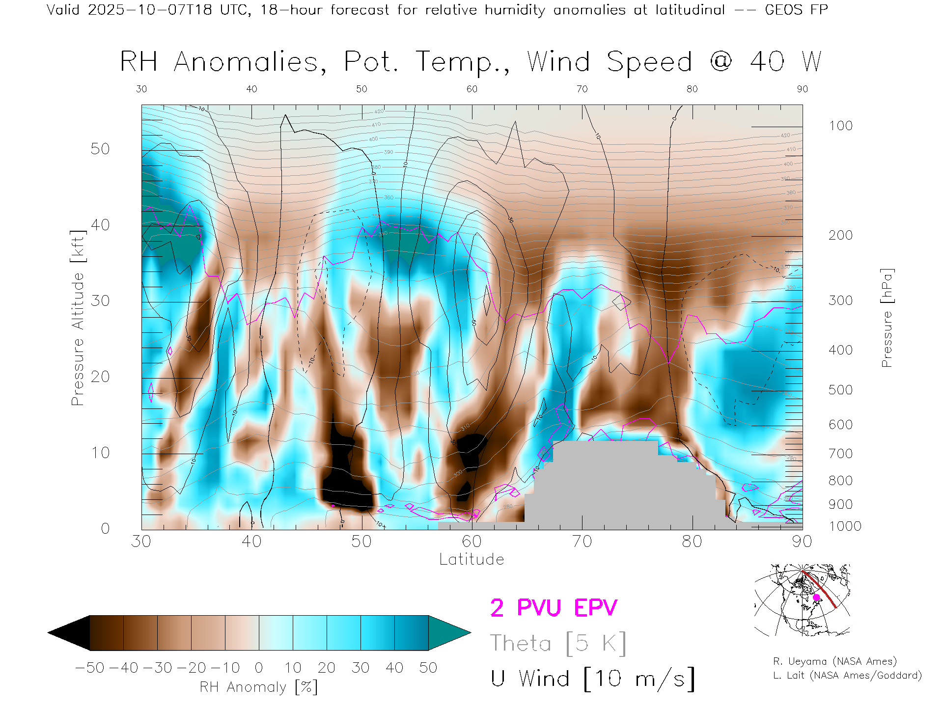 GEOS Forecast Rel. Hum. X-Section (40 W)