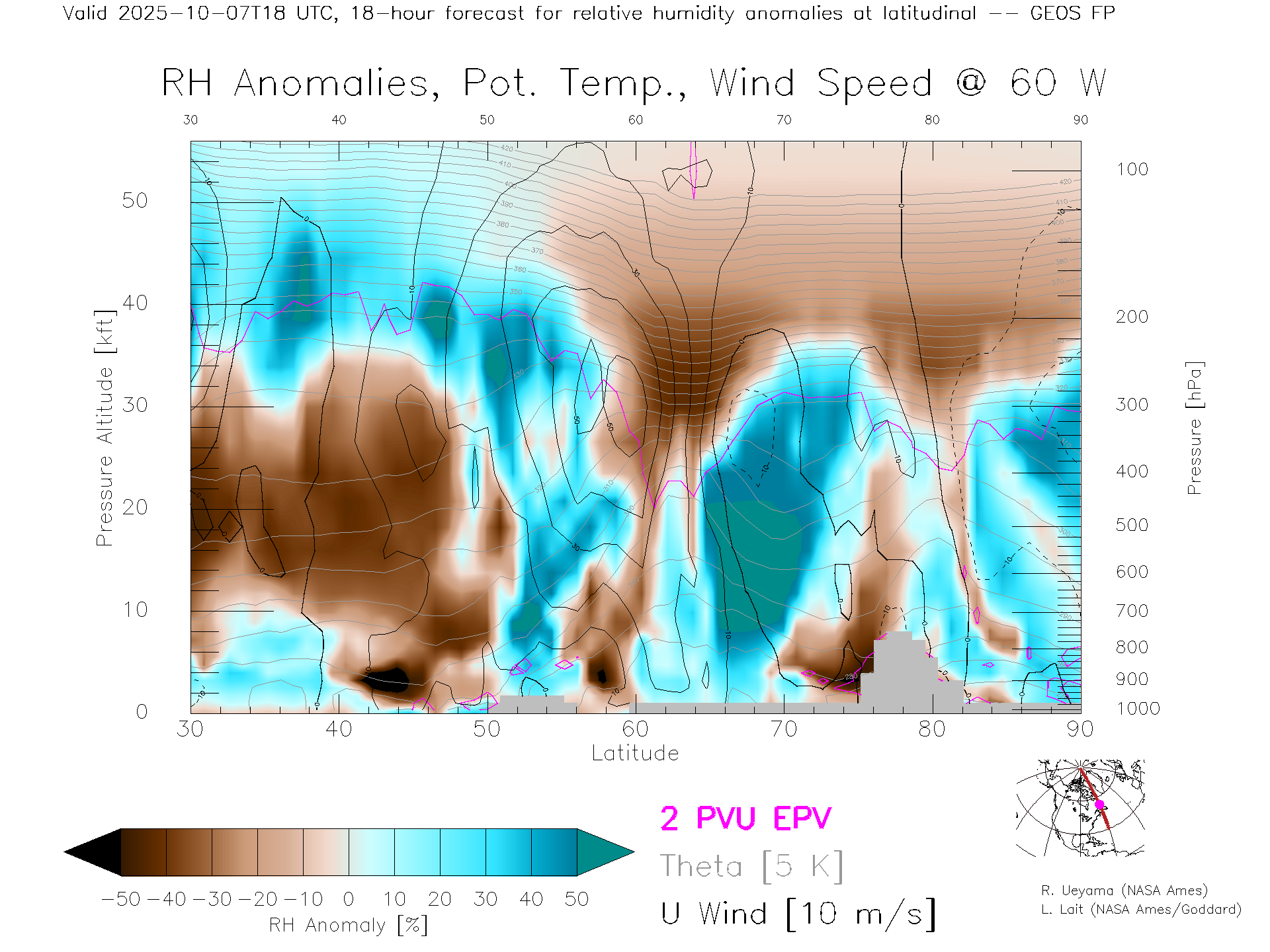 GEOS Forecast Rel. Hum. X-Section (60 W)