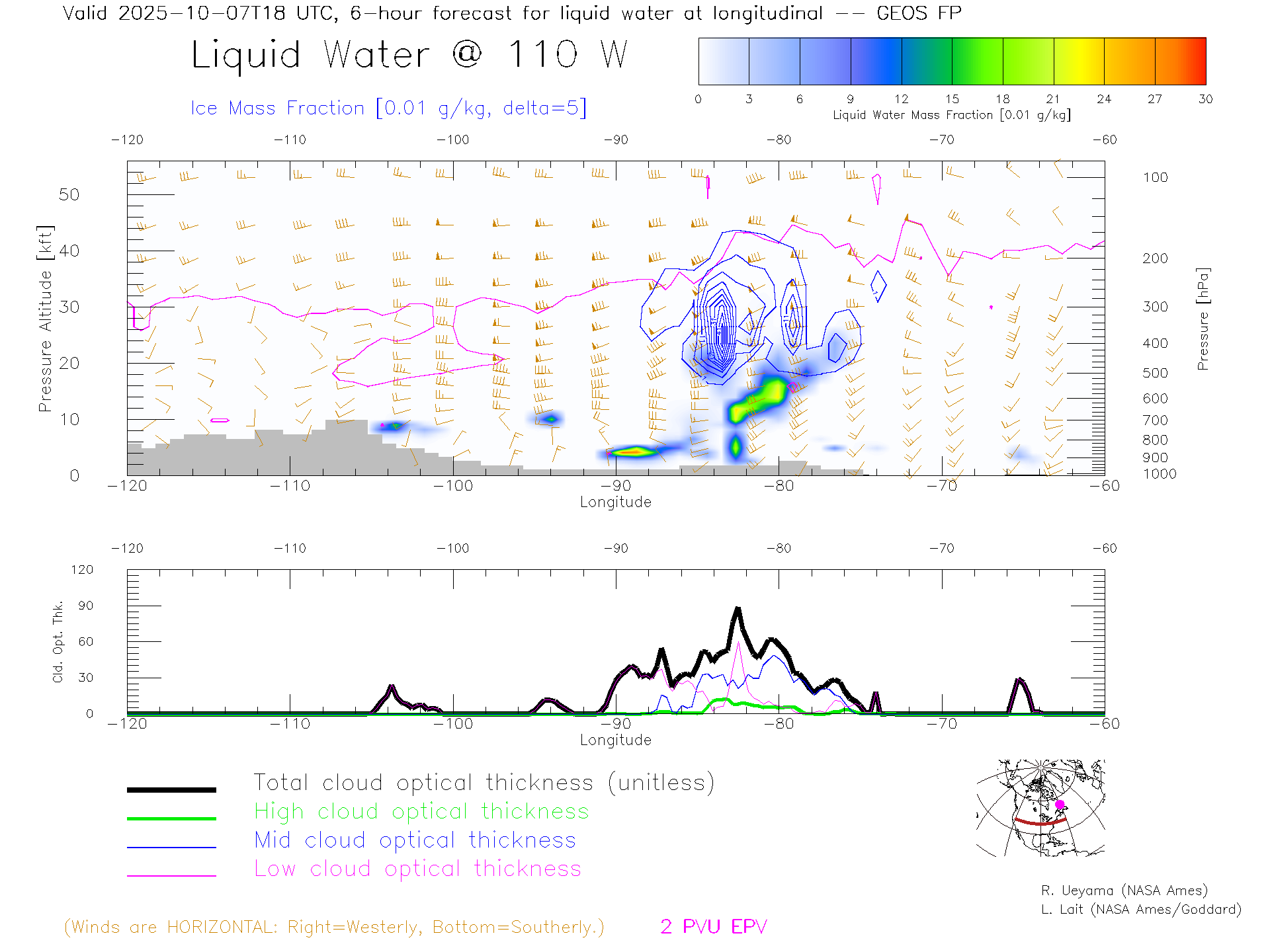 GEOS Forecast Cloud Water Content X-Section (40 N)