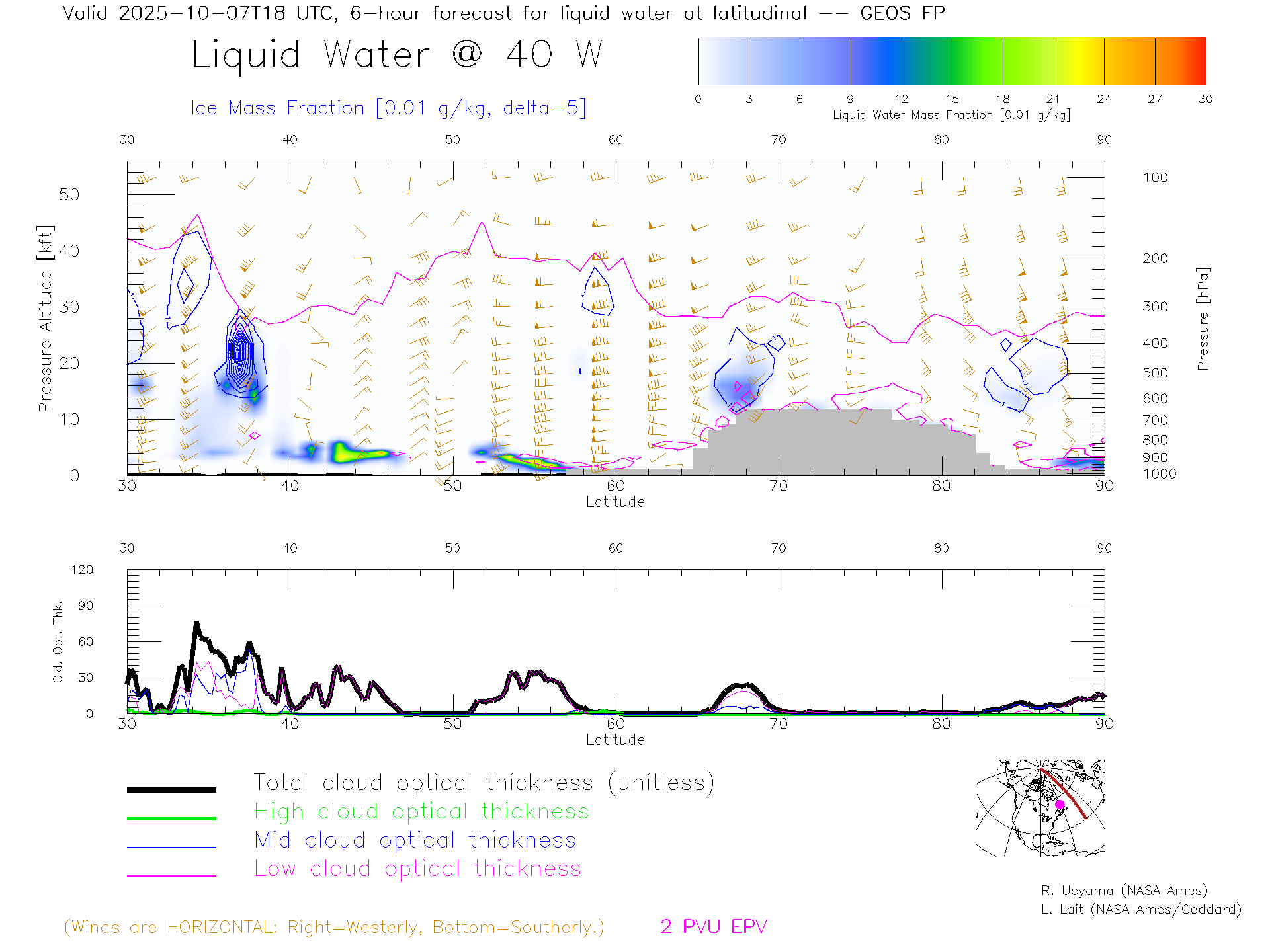 GEOS Forecast Cloud Water Content X-Section (40 W)