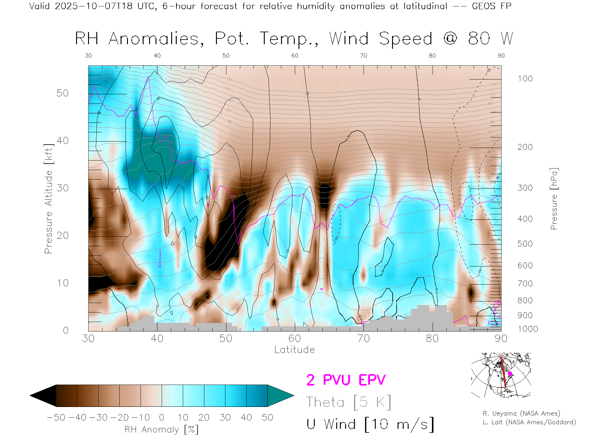 GEOS Forecast Rel. Hum. X-Section (80 W)