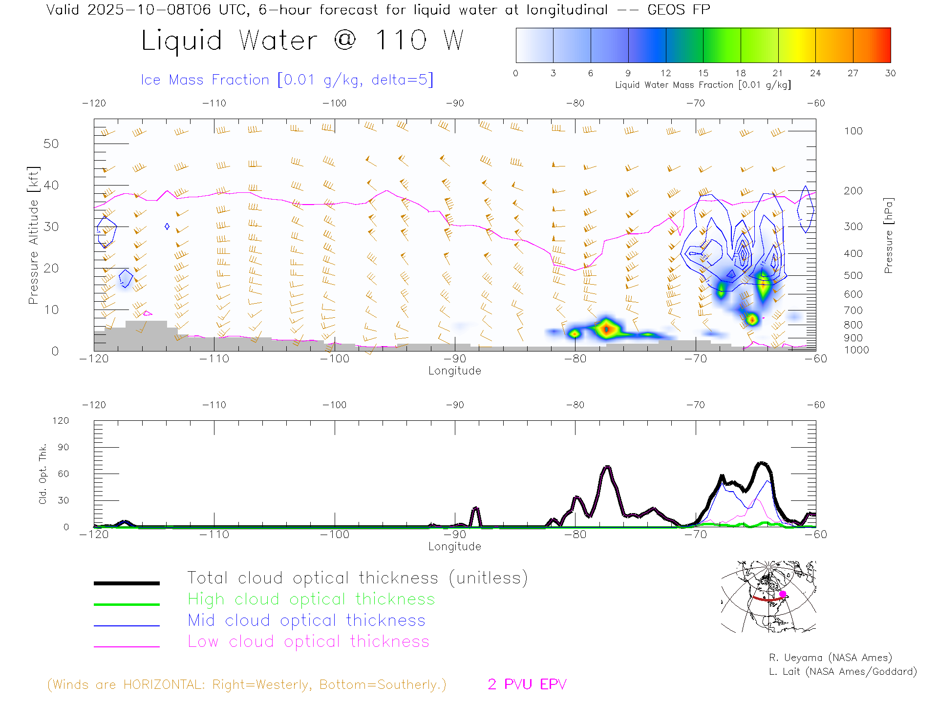 GEOS Forecast Cloud Water Content X-Section (50 N)