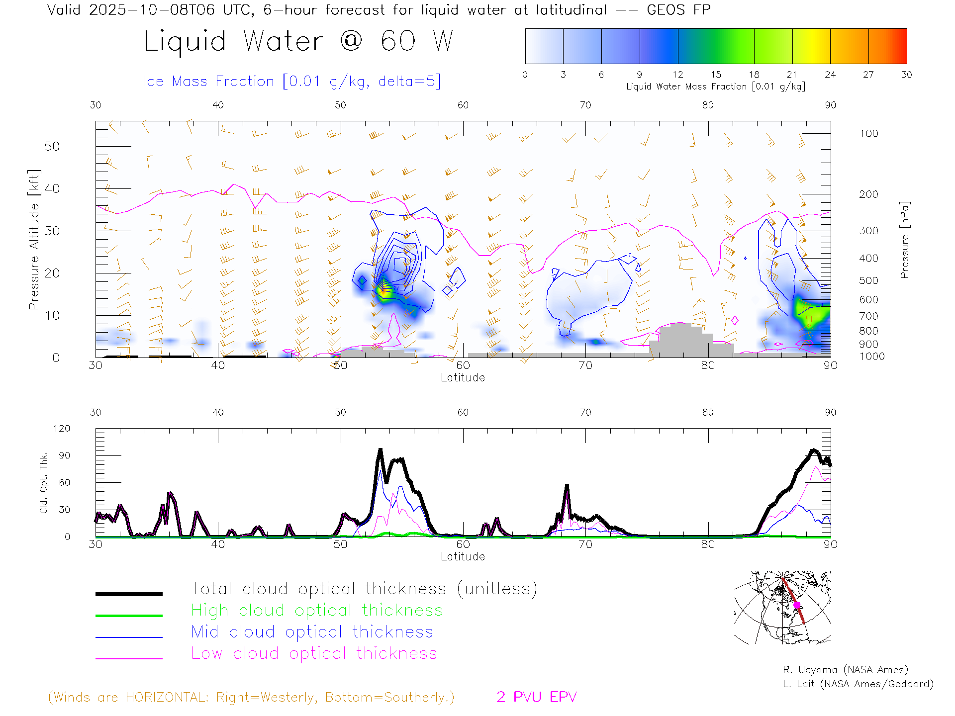 GEOS Forecast Cloud Water Content X-Section (60 W)