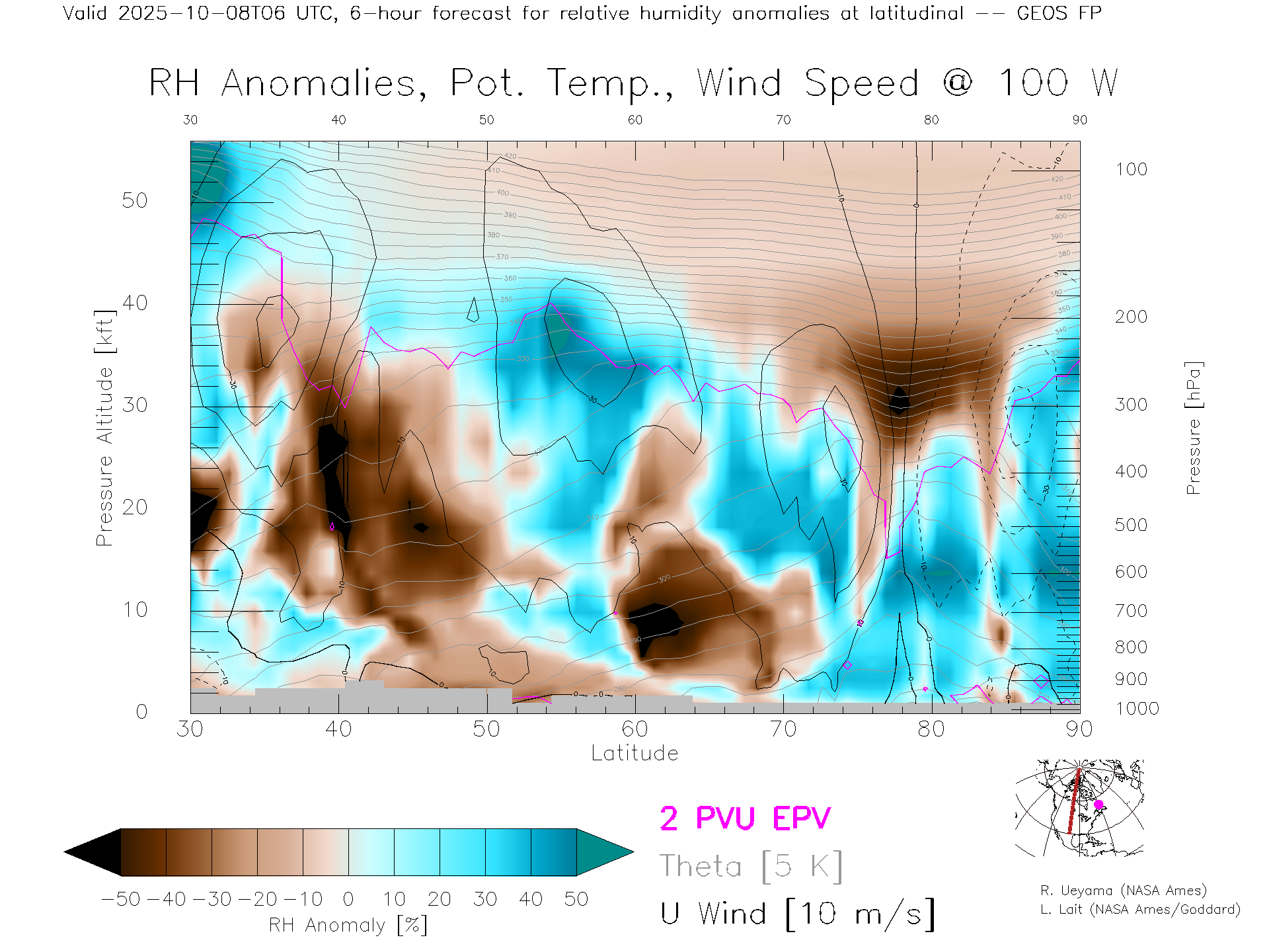 GEOS Forecast Rel. Hum. X-Section (100 W)