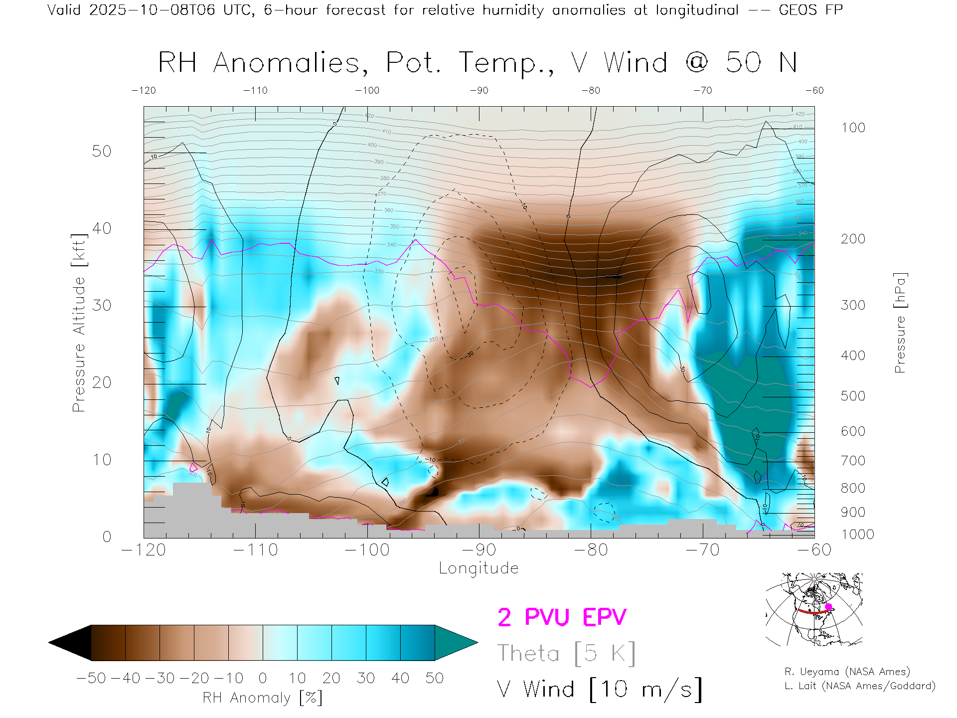 GEOS Forecast Rel. Hum. X-Section (50 N)