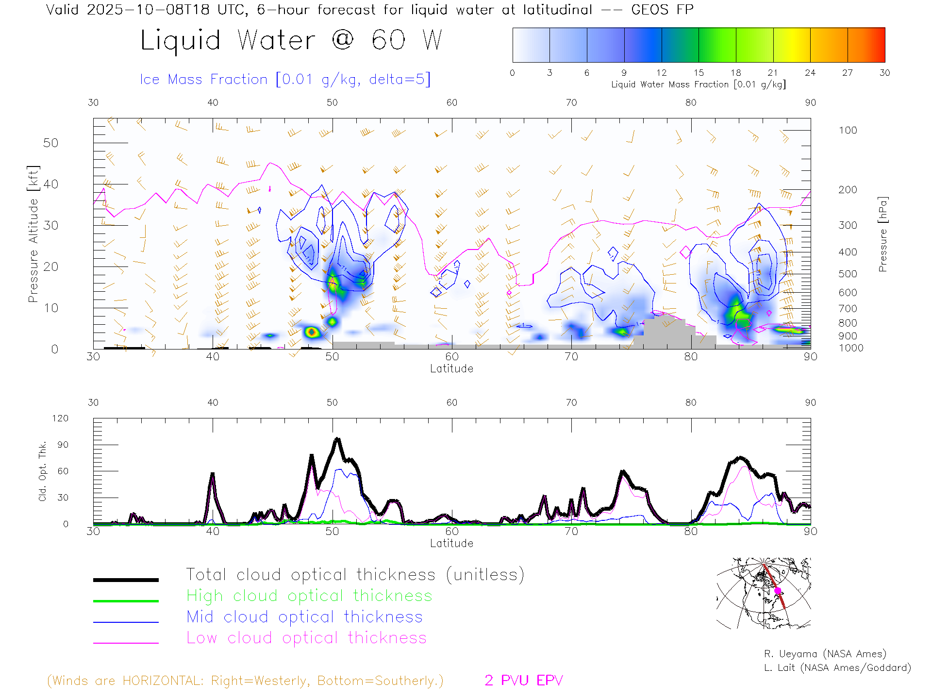 GEOS Forecast Cloud Water Content X-Section (60 W)