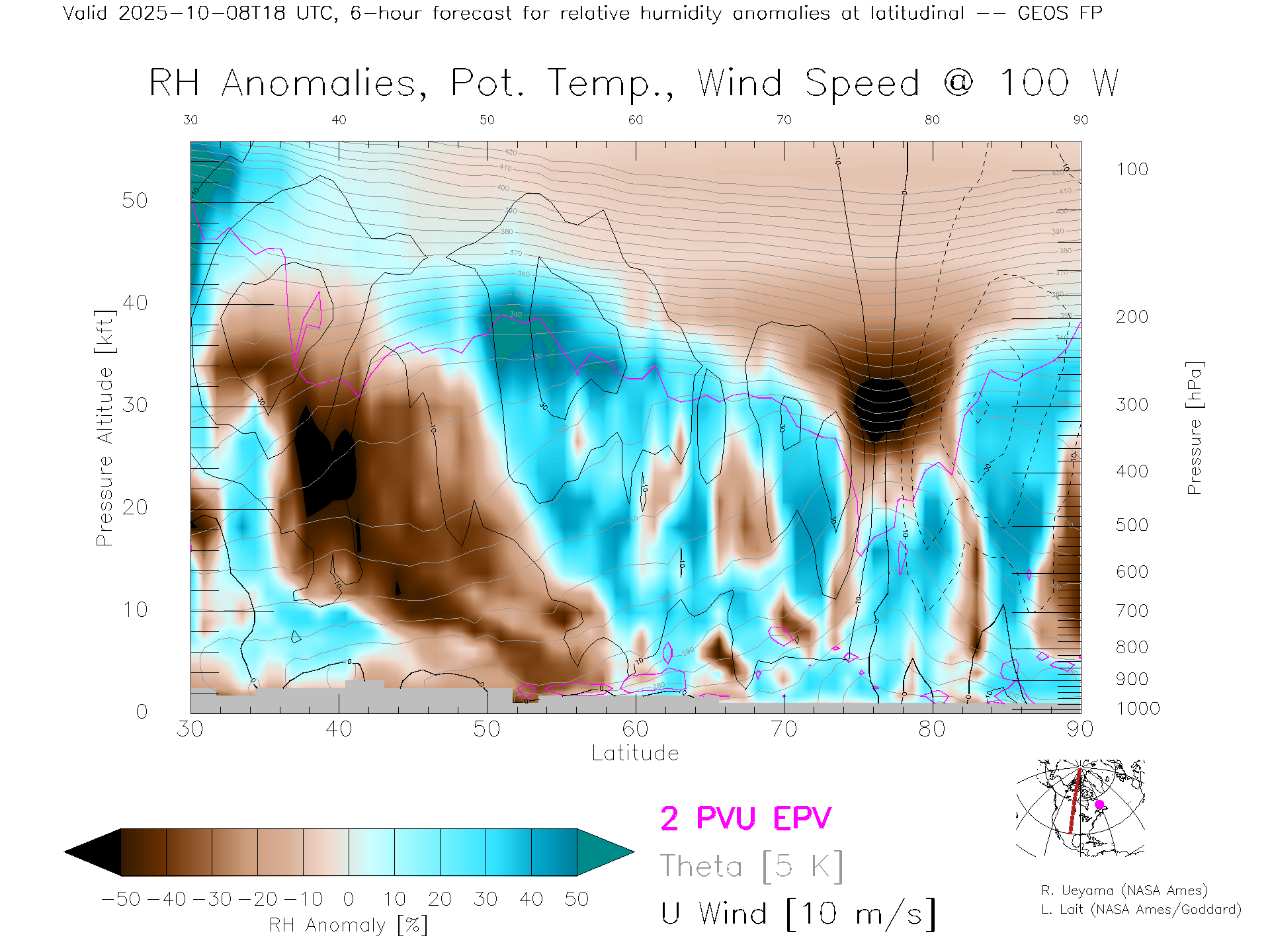 GEOS Forecast Rel. Hum. X-Section (100 W)