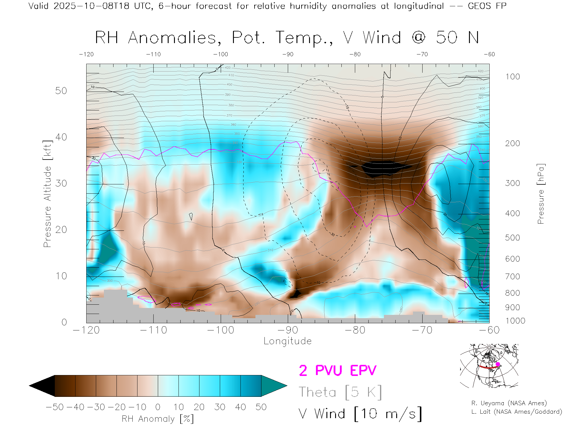 GEOS Forecast Rel. Hum. X-Section (50 N)
