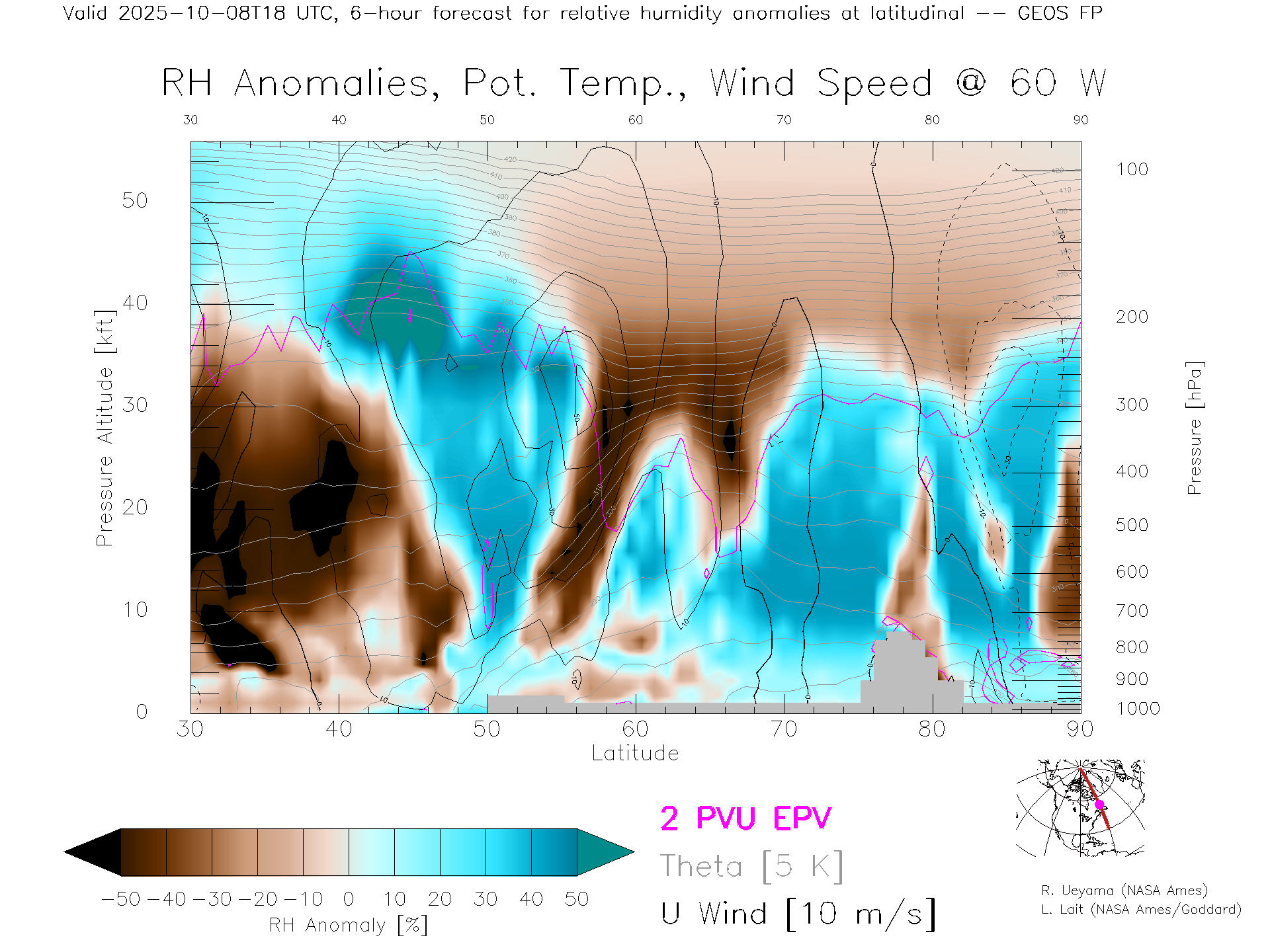 GEOS Forecast Rel. Hum. X-Section (60 W)