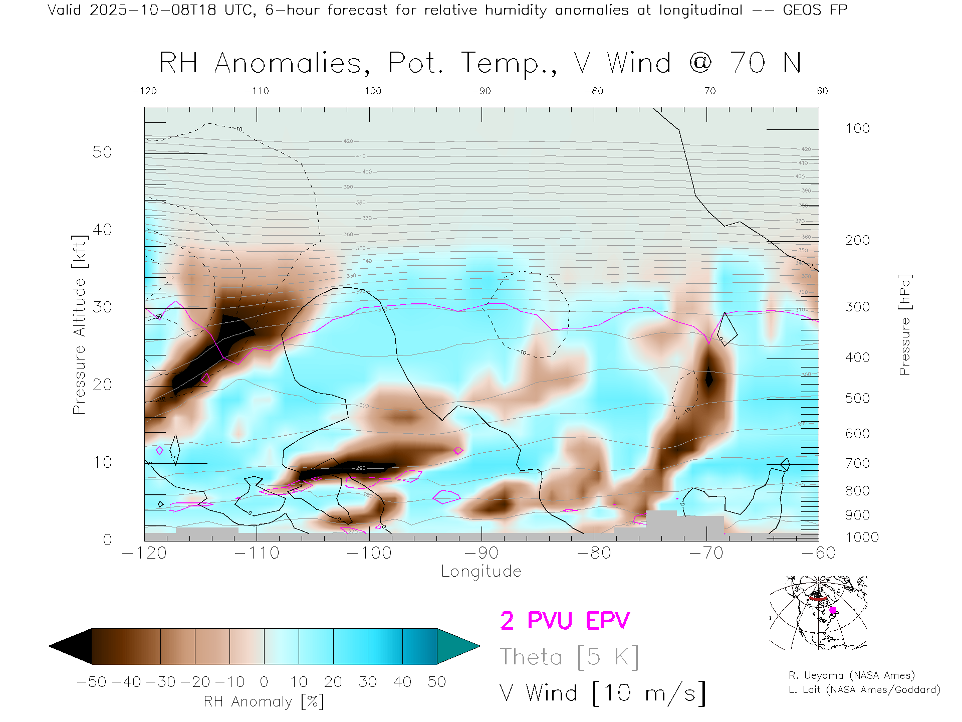 GEOS Forecast Rel. Hum. X-Section (70 N)