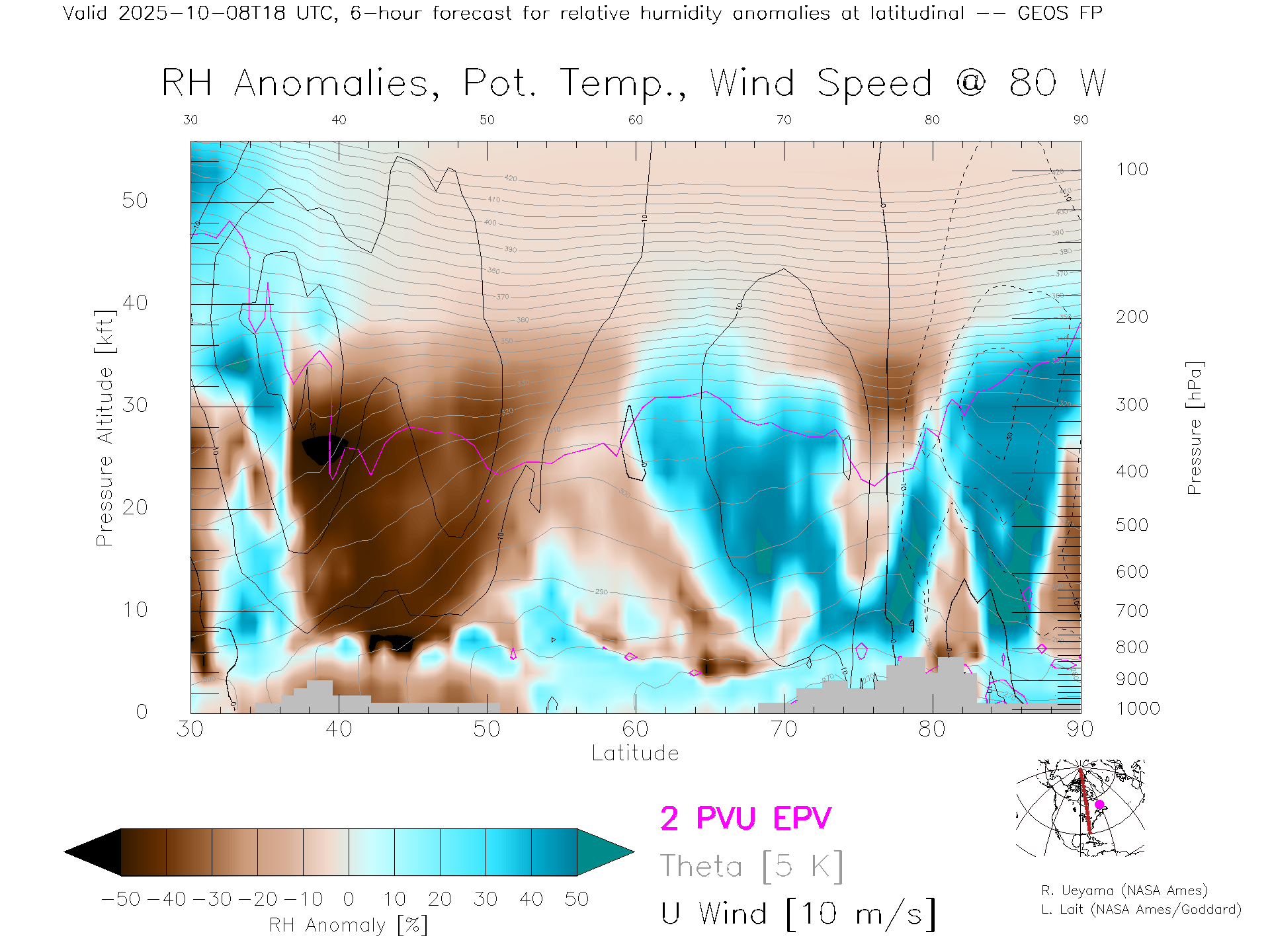 GEOS Forecast Rel. Hum. X-Section (80 W)
