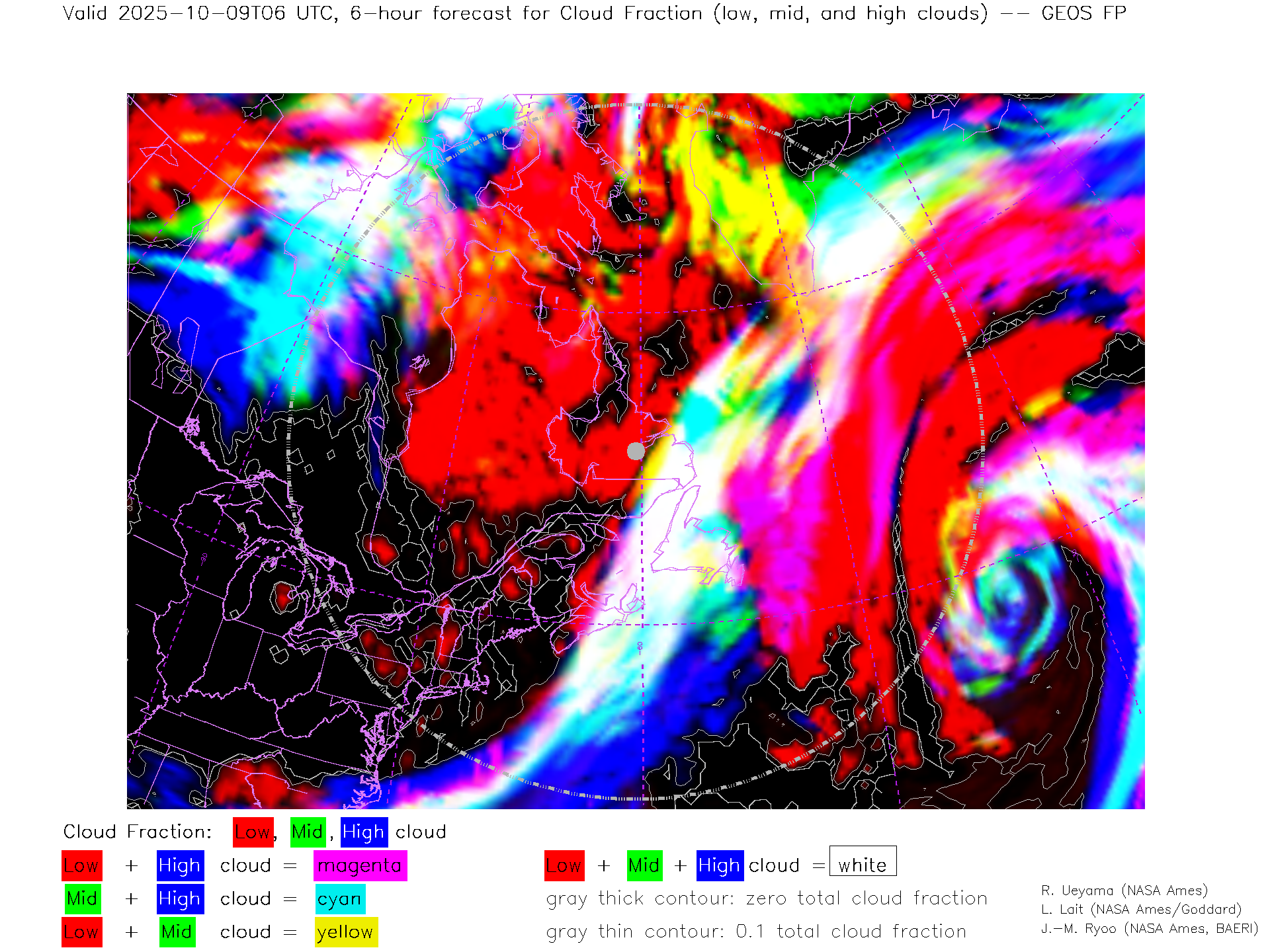 GEOS Forecast Low-, Mid- and High-level Cloud Fraction