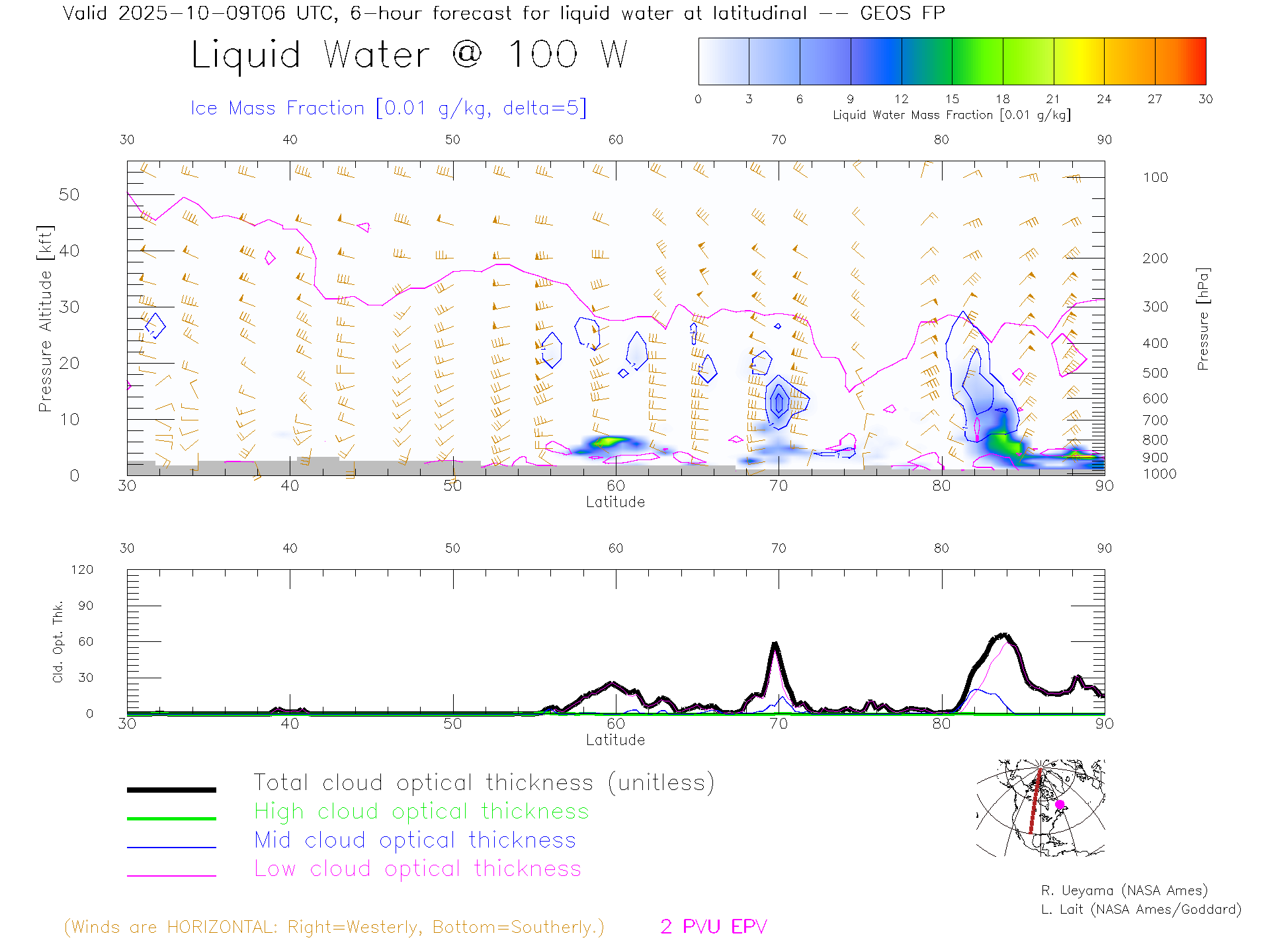 GEOS Forecast Cloud Water Content X-Section (100 W)