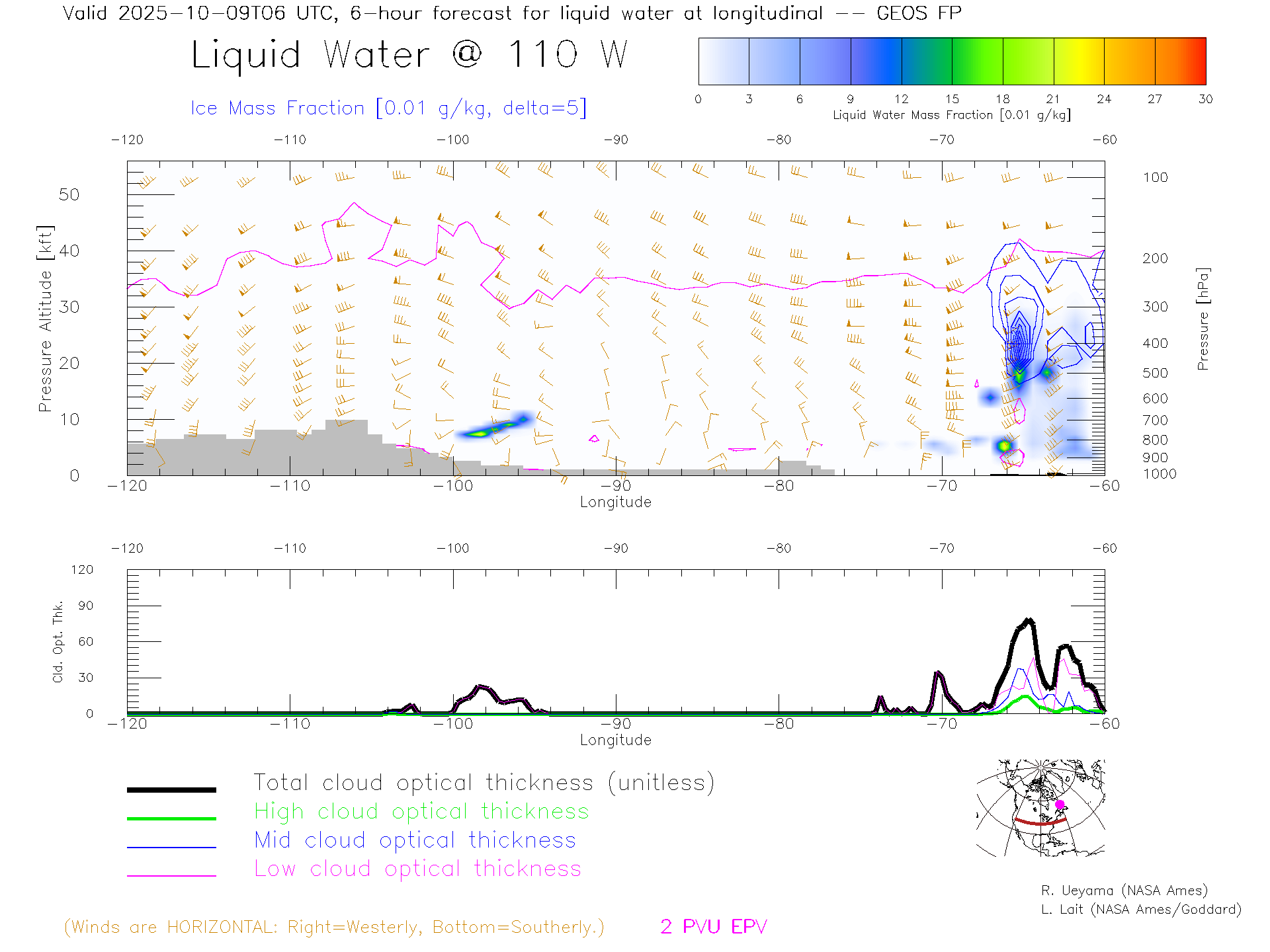 GEOS Forecast Cloud Water Content X-Section (40 N)