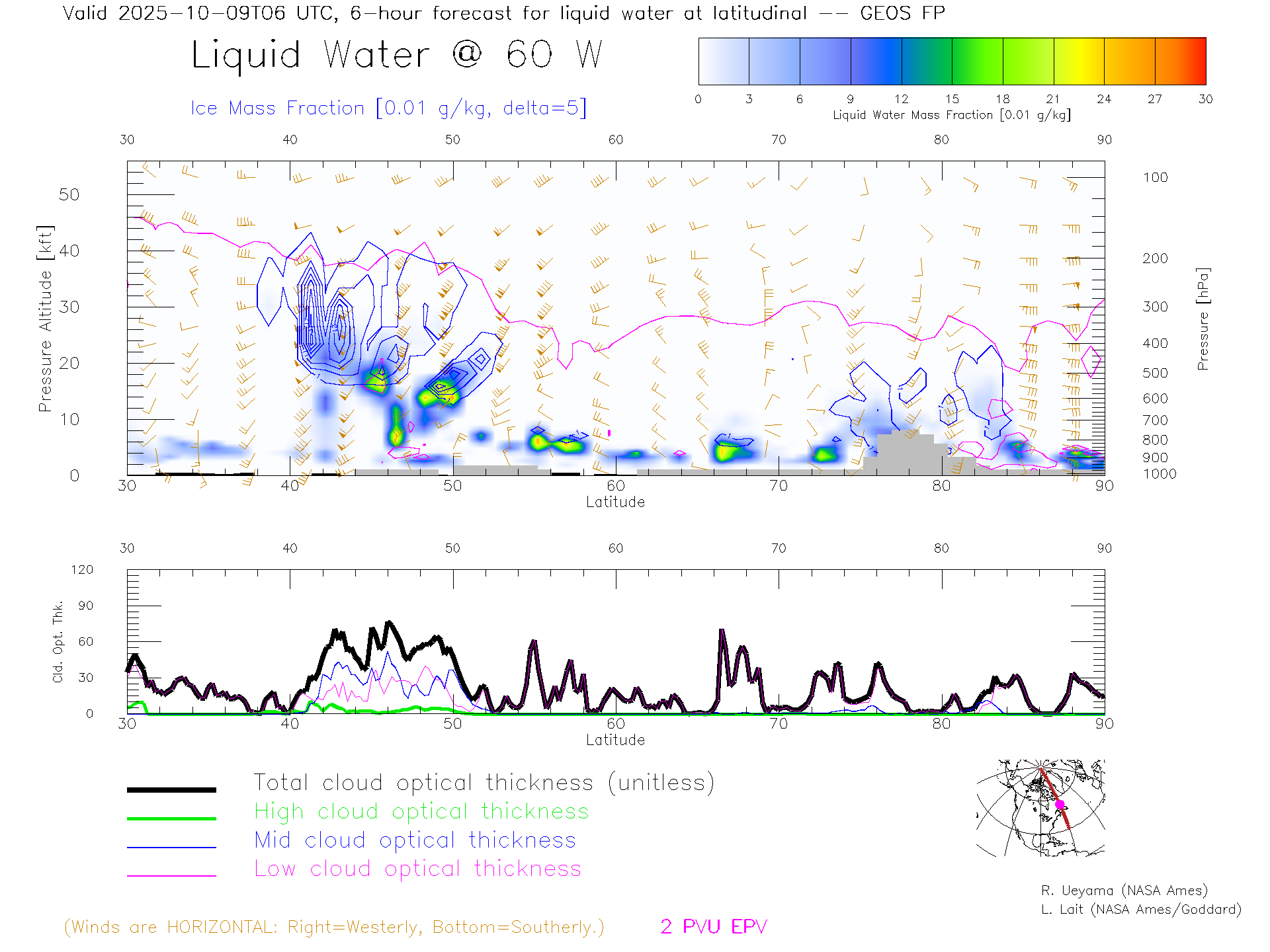 GEOS Forecast Cloud Water Content X-Section (60 W)