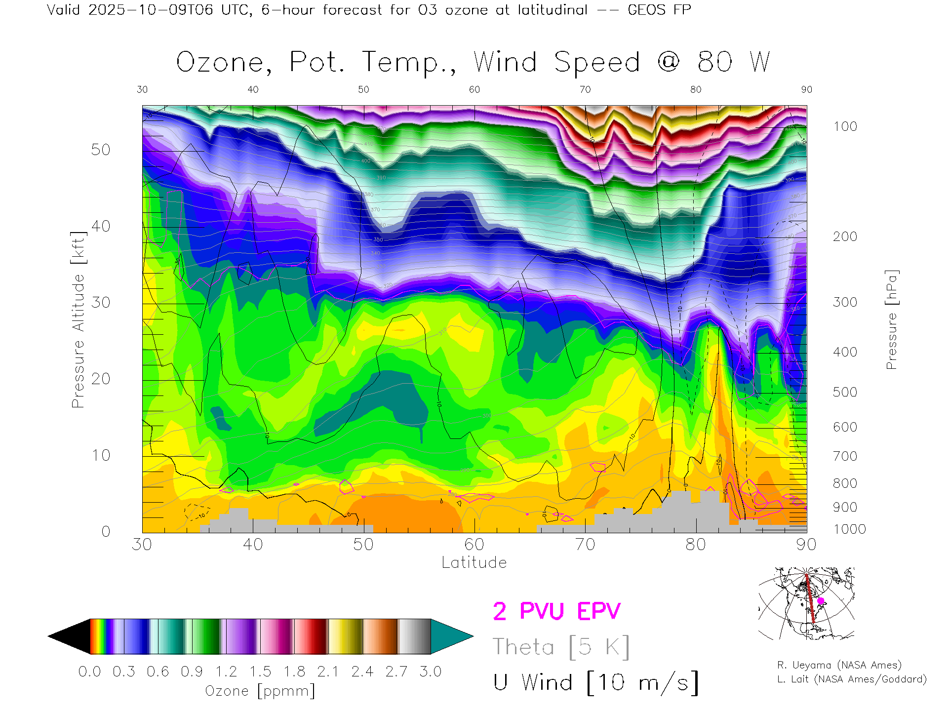 GEOS Forecast Ozone X-Section (80 W)