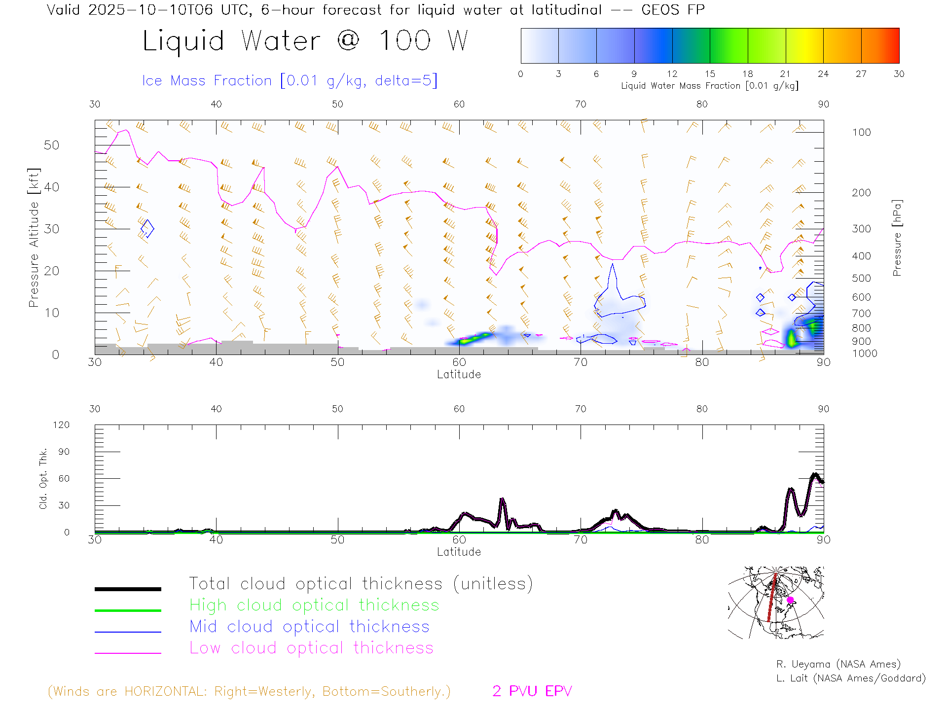 GEOS Forecast Cloud Water Content X-Section (100 W)