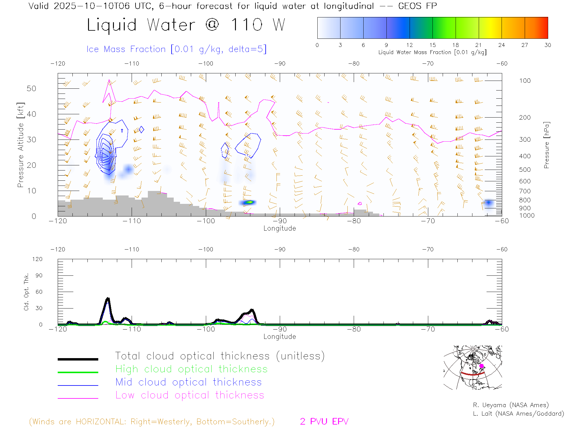 GEOS Forecast Cloud Water Content X-Section (40 N)