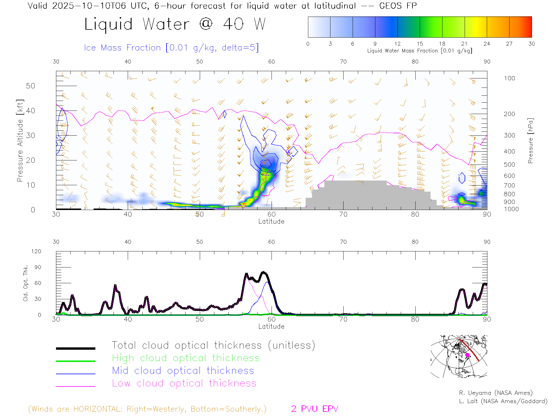 GEOS Forecast Cloud Water Content X-Section (40 W)