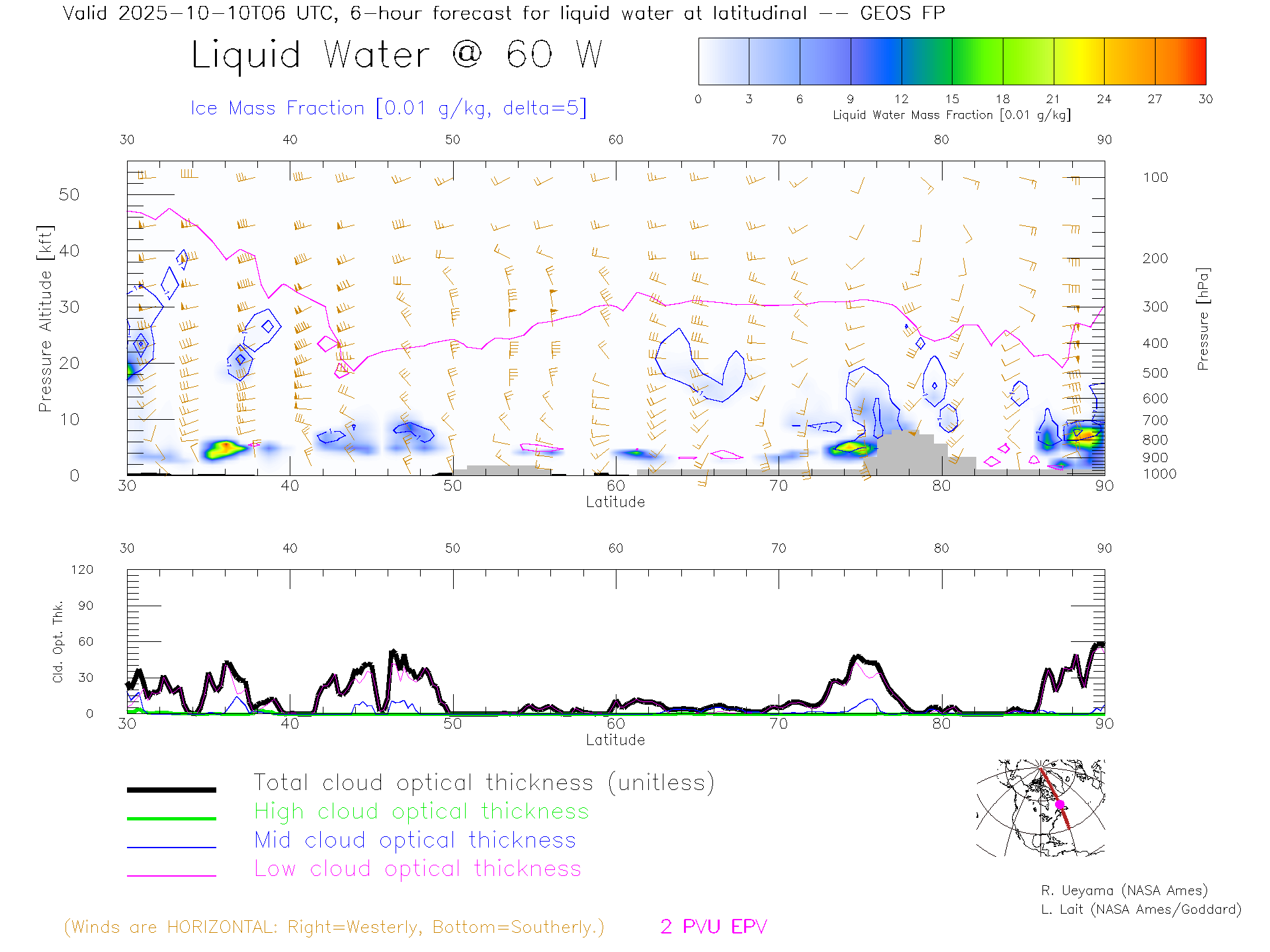 GEOS Forecast Cloud Water Content X-Section (60 W)