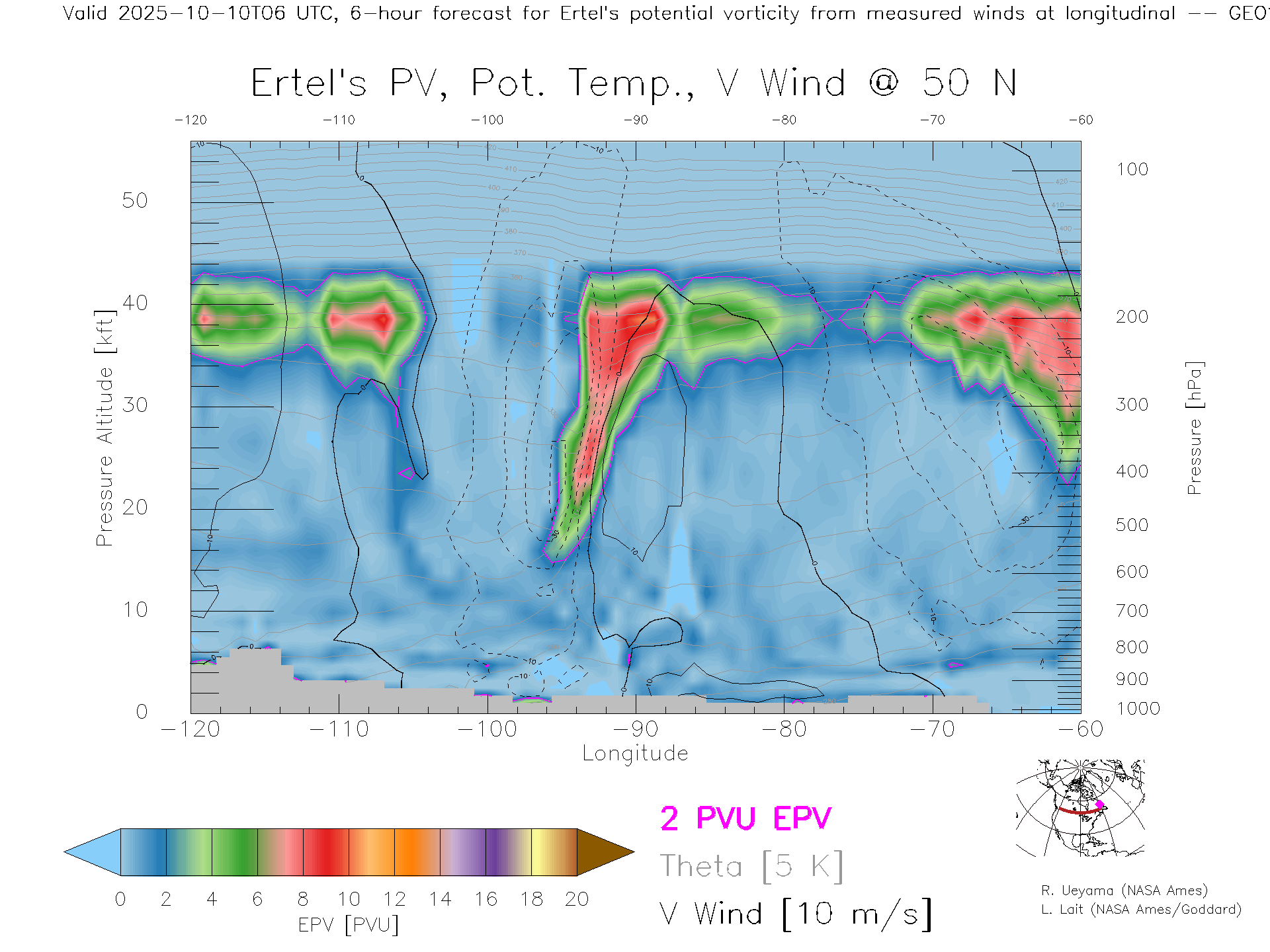 GEOS Forecast PV X-Section (50 N)