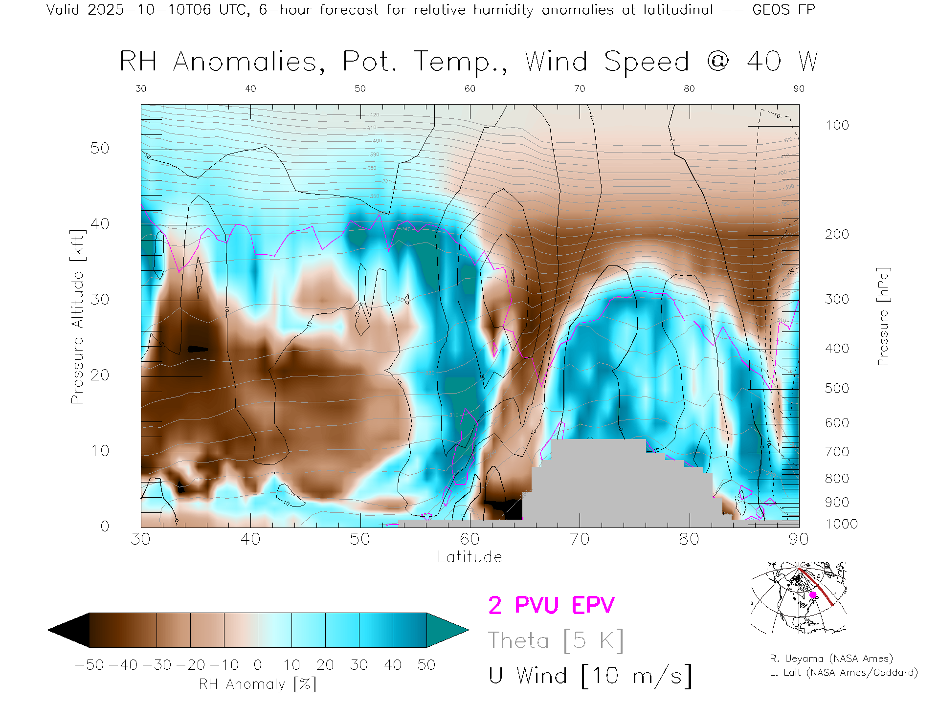 GEOS Forecast Rel. Hum. X-Section (40 W)