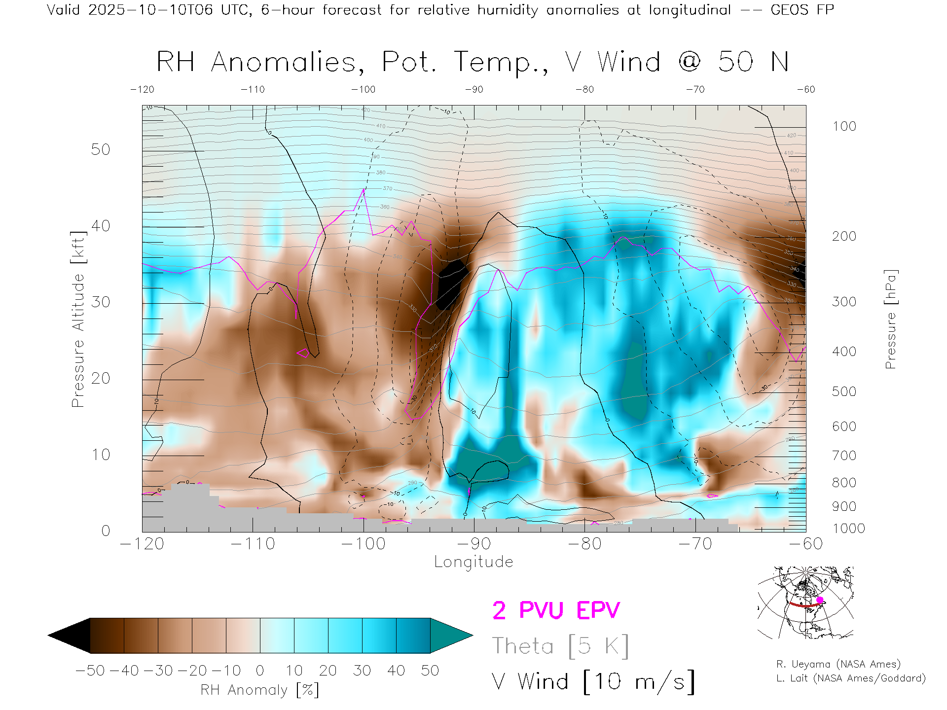 GEOS Forecast Rel. Hum. X-Section (50 N)