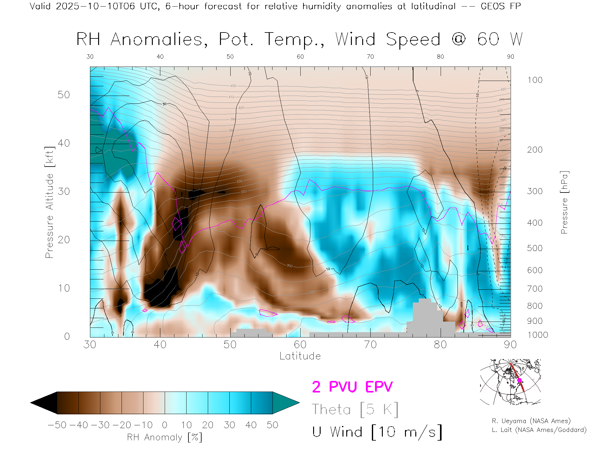 GEOS Forecast Rel. Hum. X-Section (60 W)