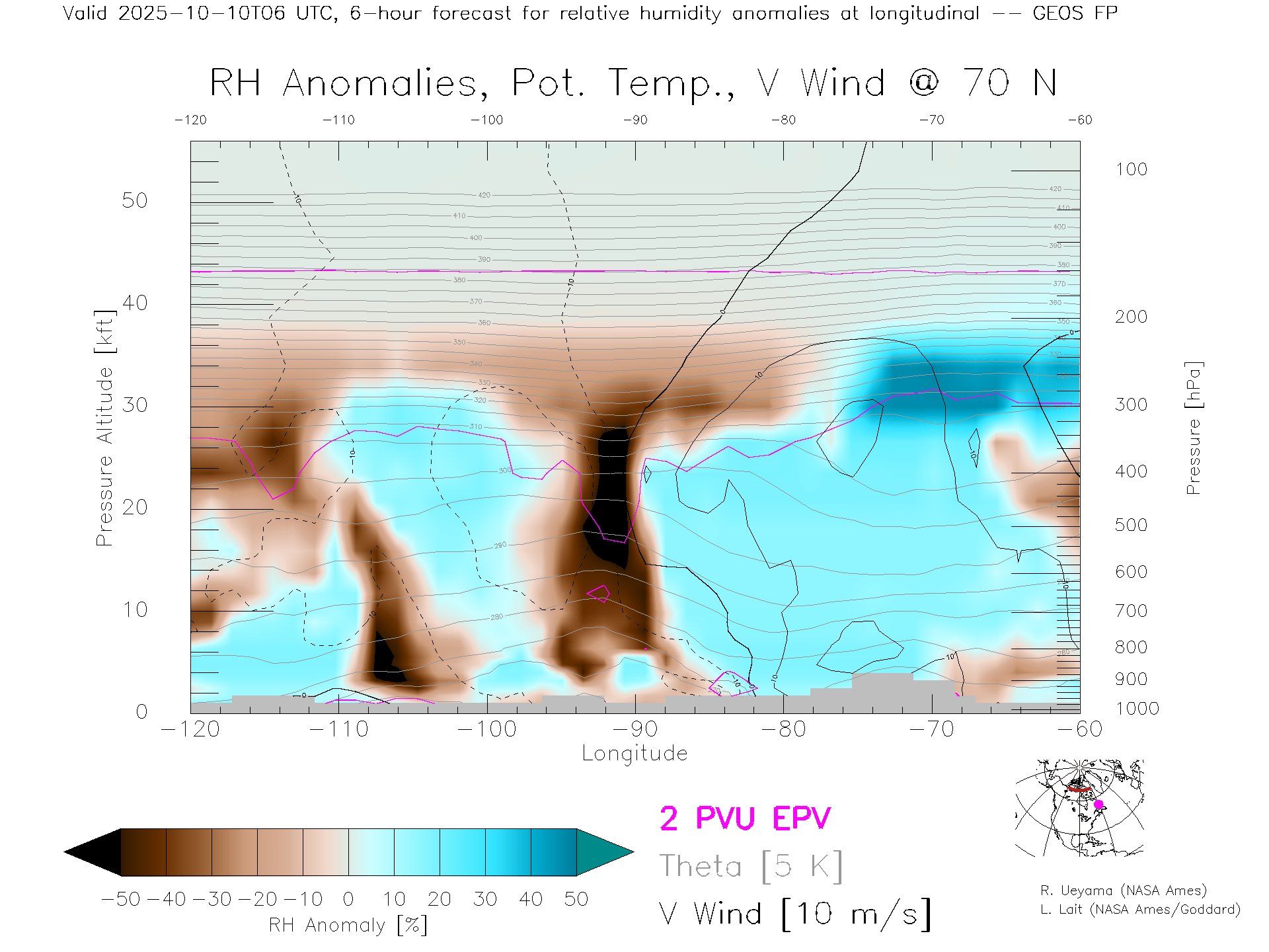 GEOS Forecast Rel. Hum. X-Section (70 N)