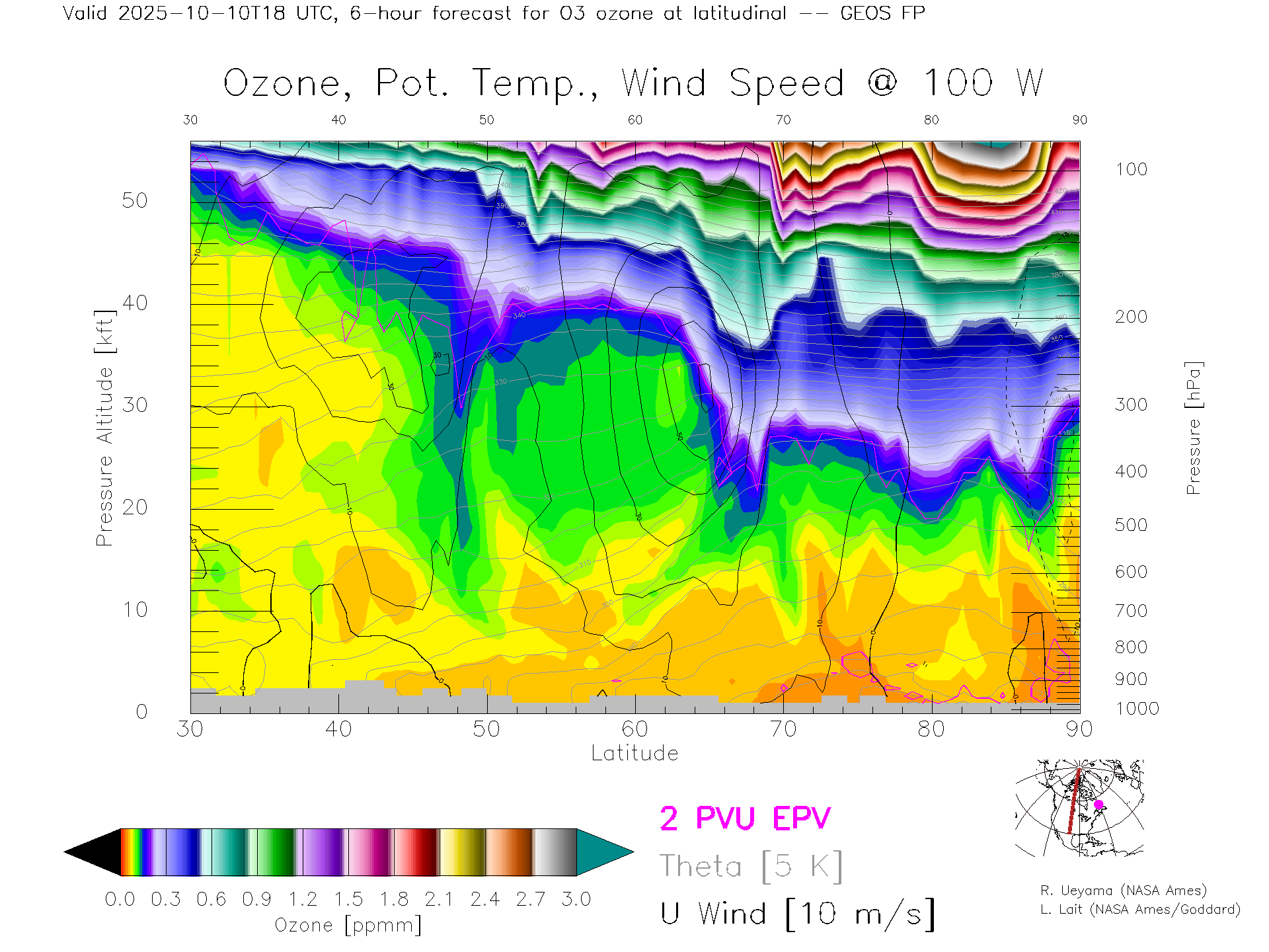 GEOS Forecast Ozone X-Section (100 W)