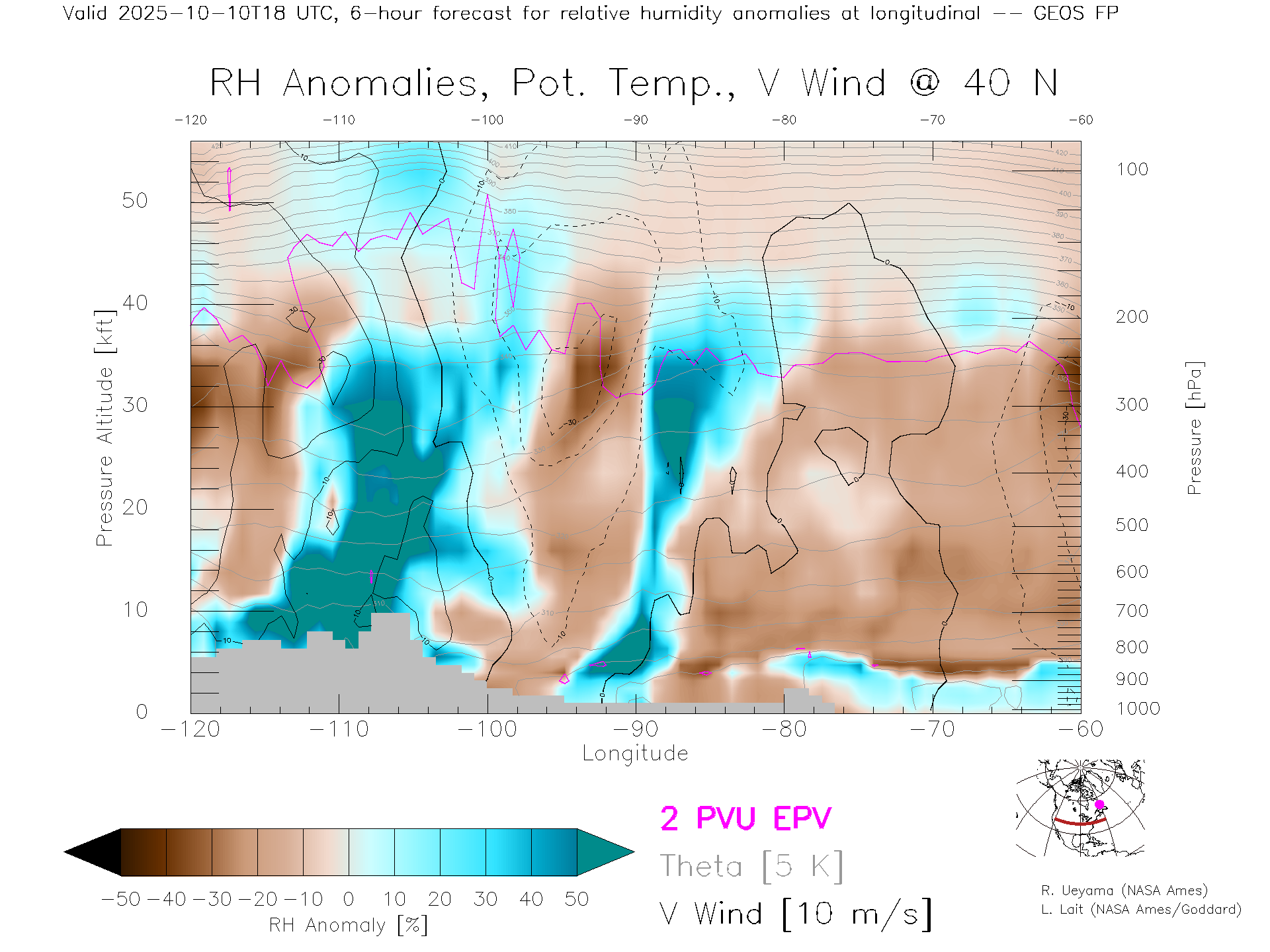 GEOS Forecast Rel. Hum. X-Section (40 N)
