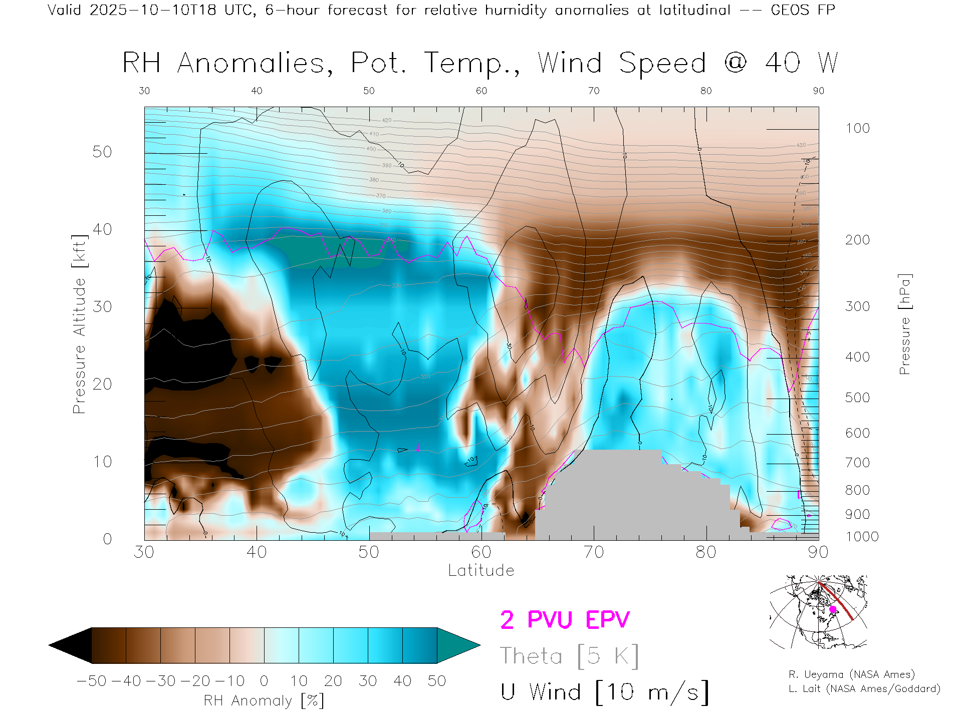 GEOS Forecast Rel. Hum. X-Section (40 W)