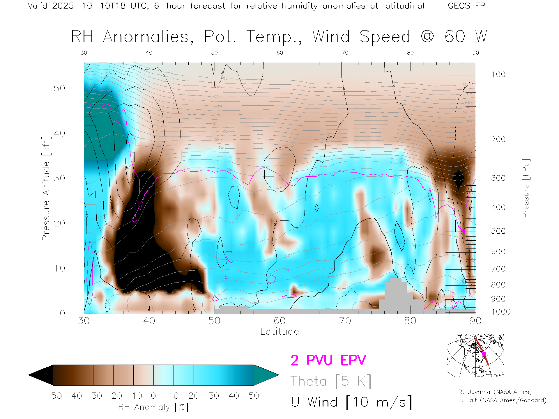 GEOS Forecast Rel. Hum. X-Section (60 W)