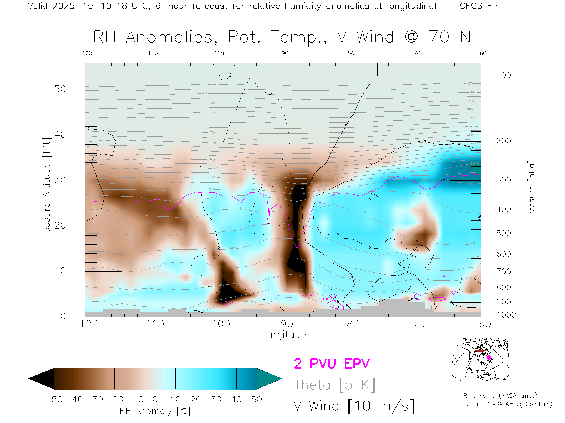 GEOS Forecast Rel. Hum. X-Section (70 N)