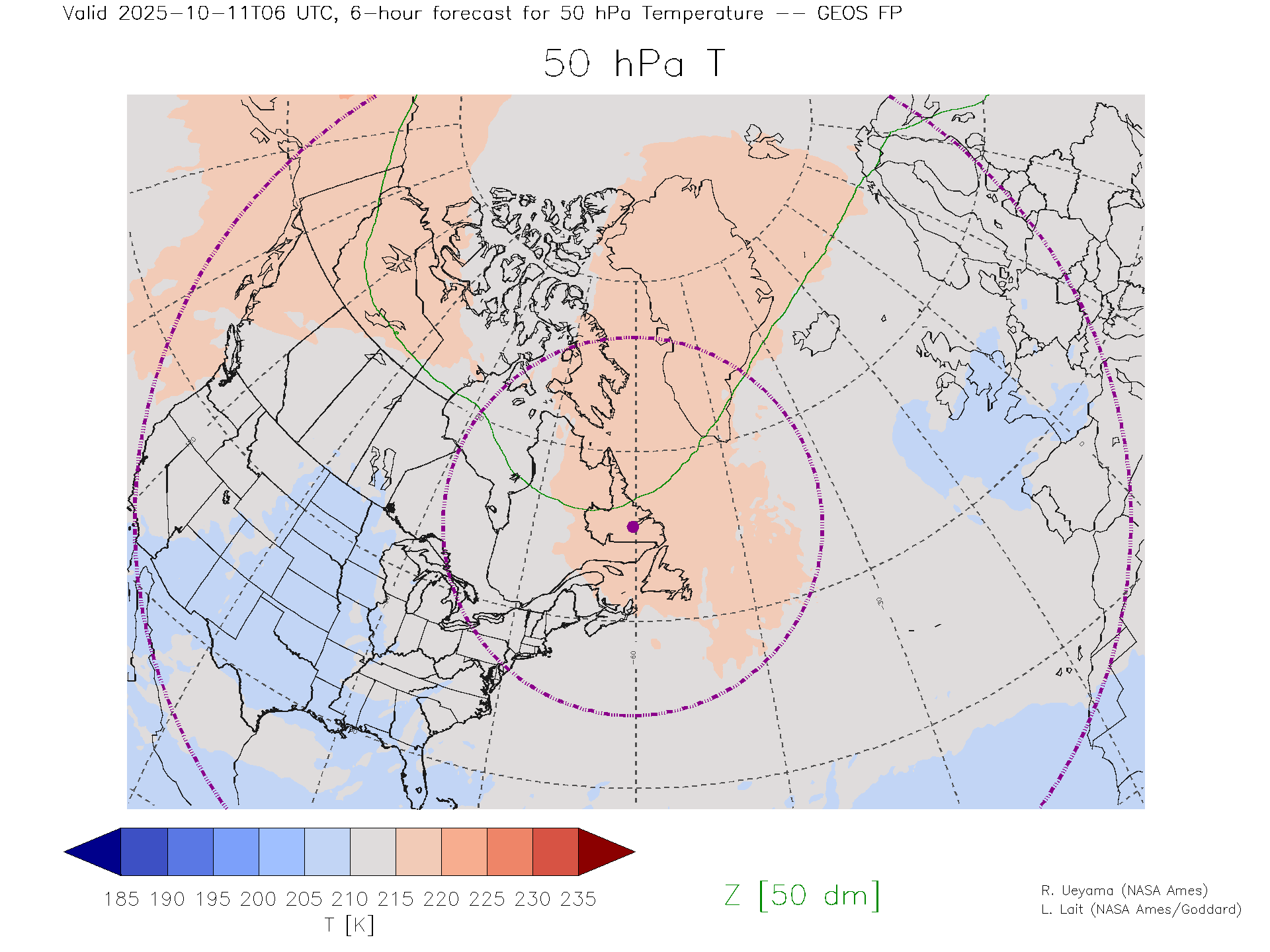 GEOS Forecast 50 hPa Temp.